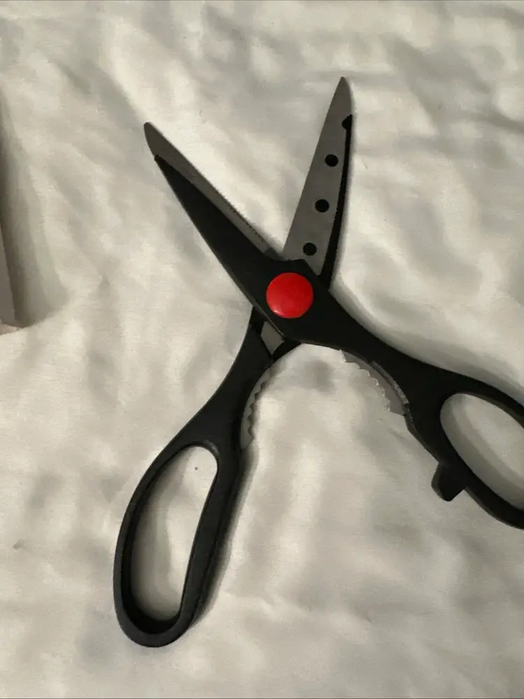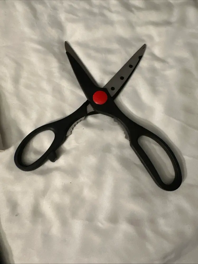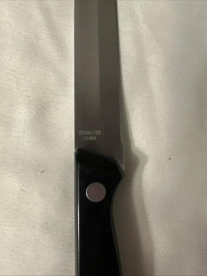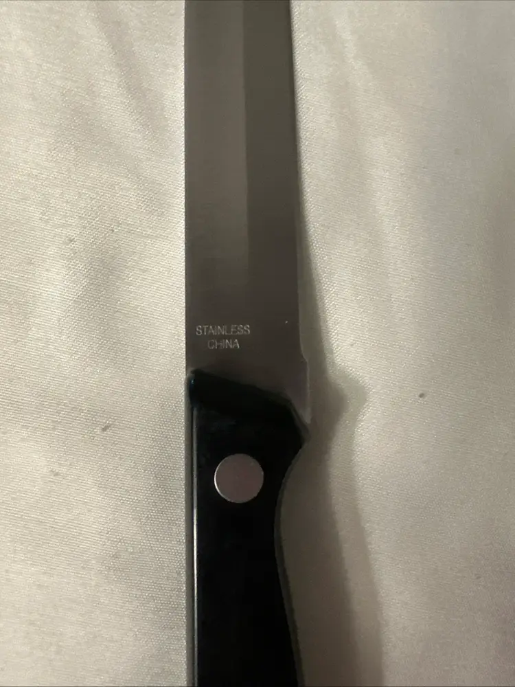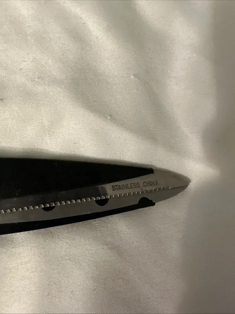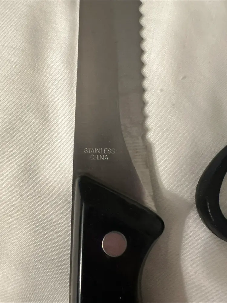 This 3 piece set includes shears, a serrated bread knife and a utility knife, all have blade covers. Rarely used, in great condition.