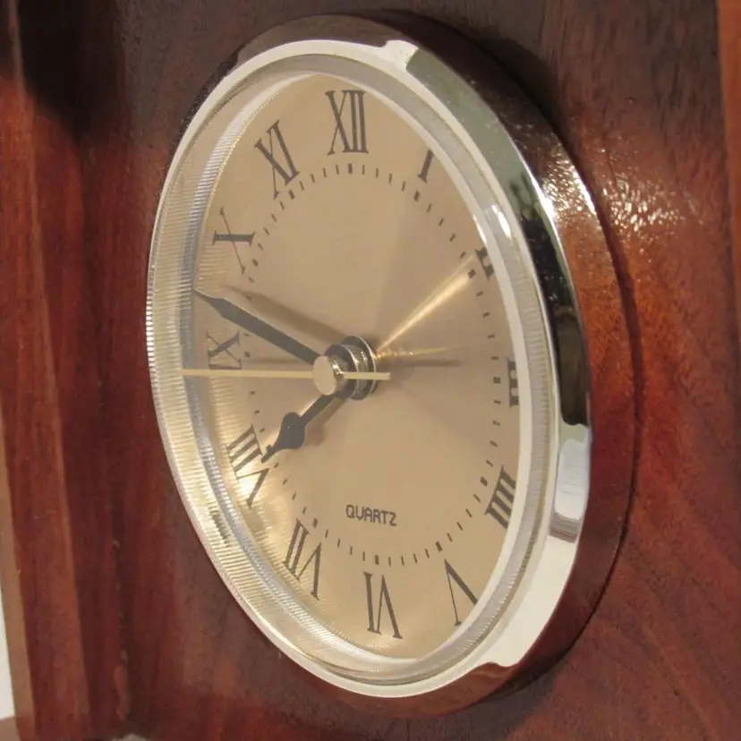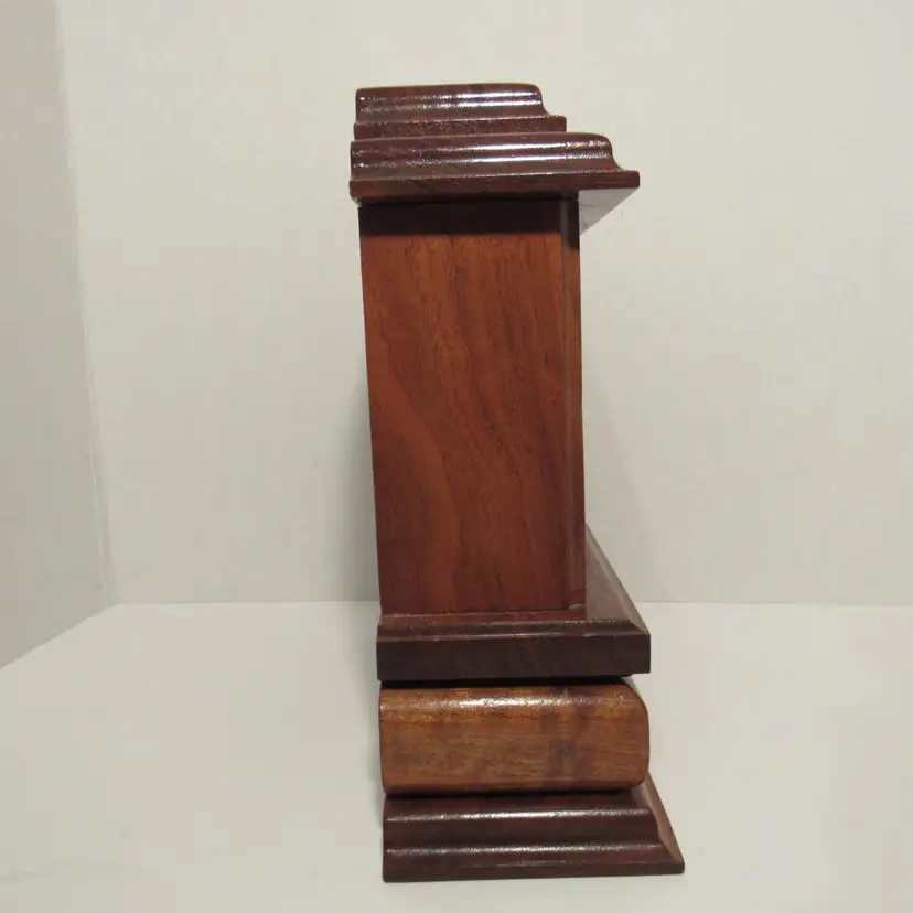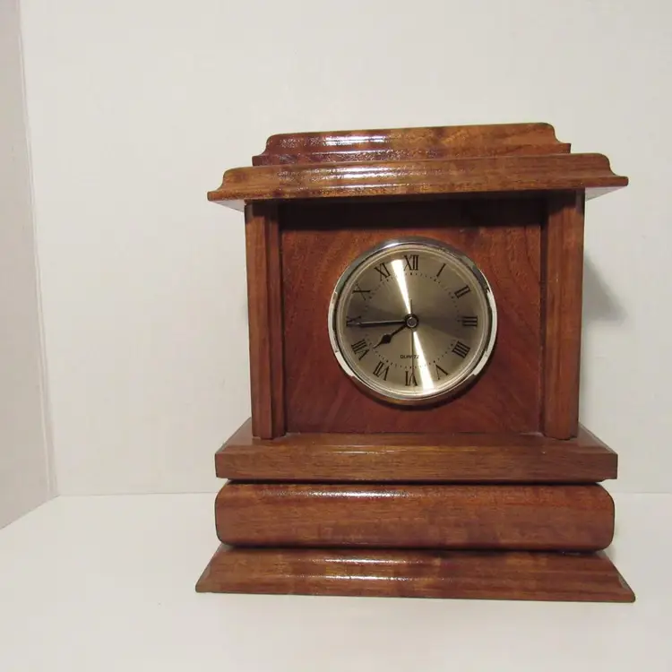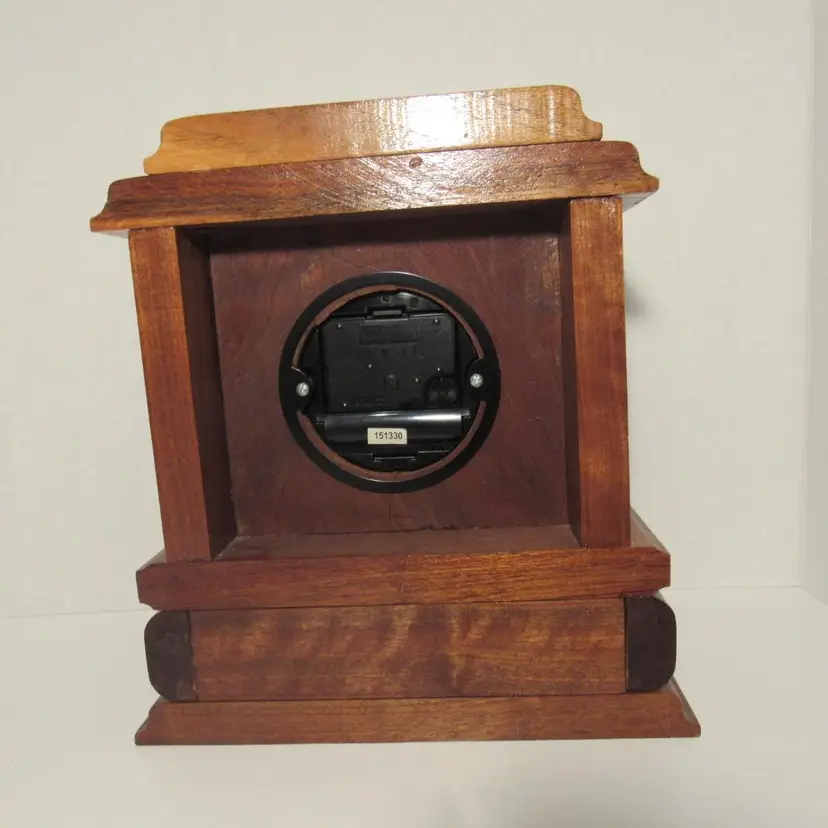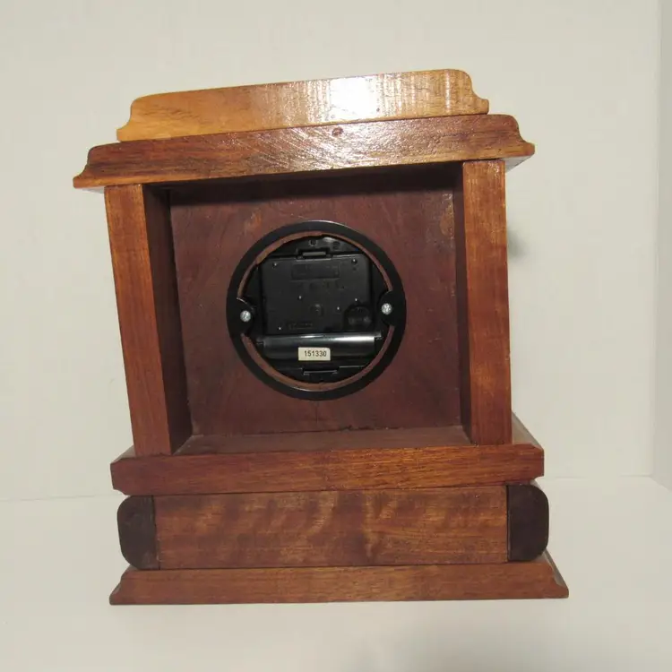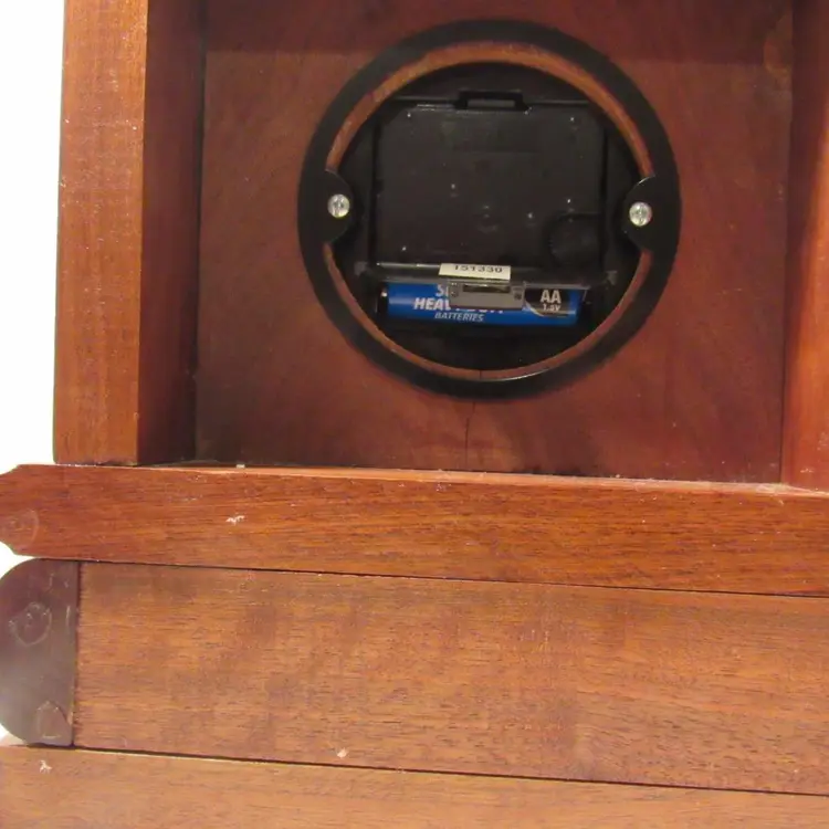 *Pre-owned *Measurements: L 10" x W 8.5" x H 3 3/8" *Requires 1 AA Battery *Clock has a chip on wood, the top back. (See last picture.)