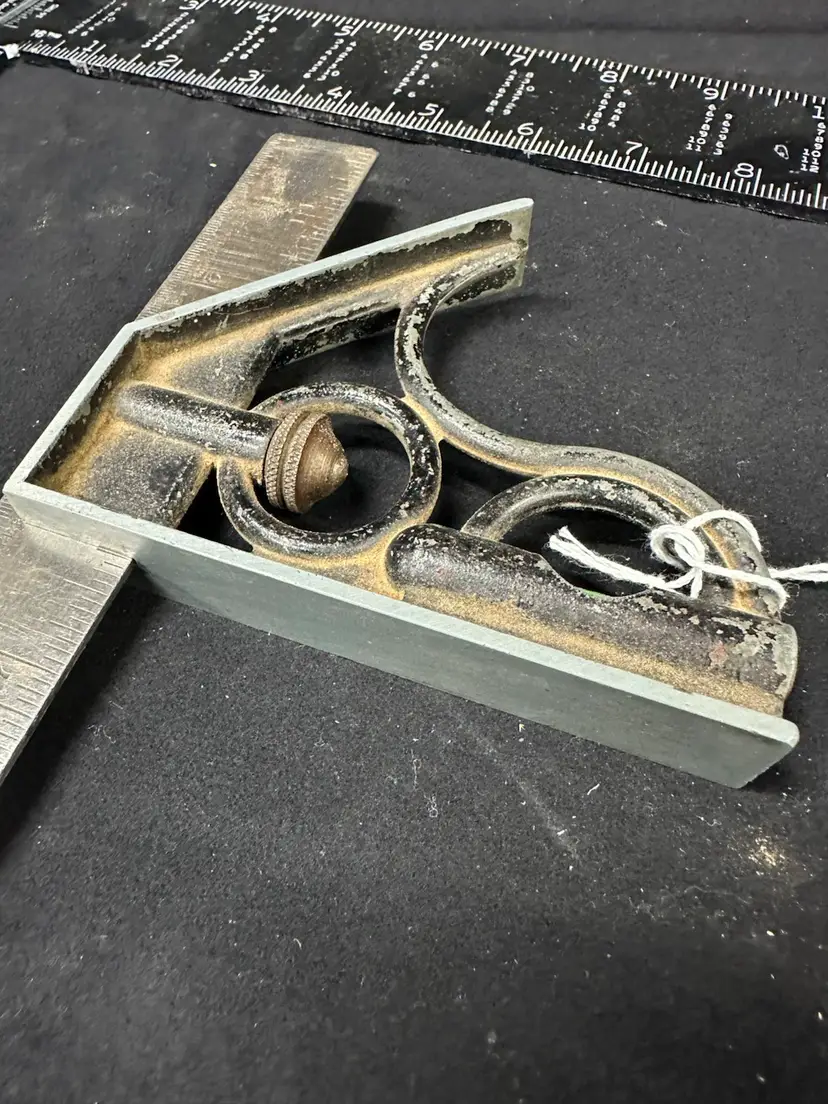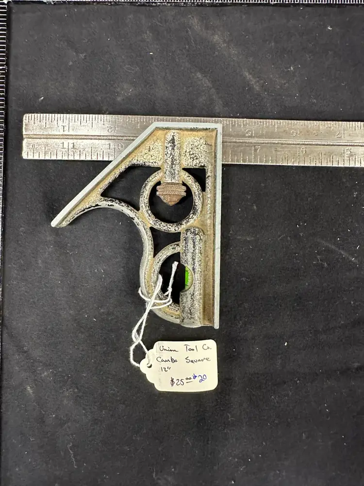12” Union Tool co. Combination square. Excellent working condition, slight paint overspray on head otherwise cosmetically good functionally perfect head locks solid with very little force.