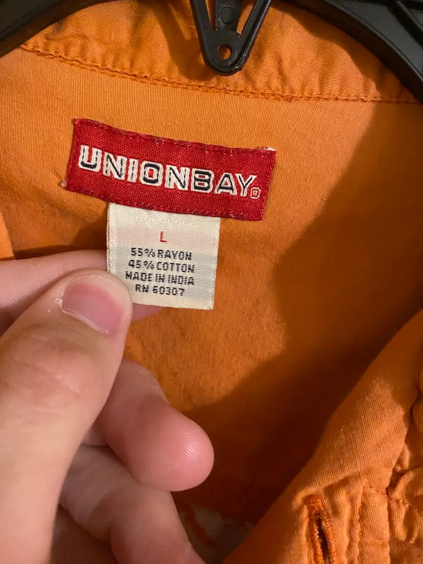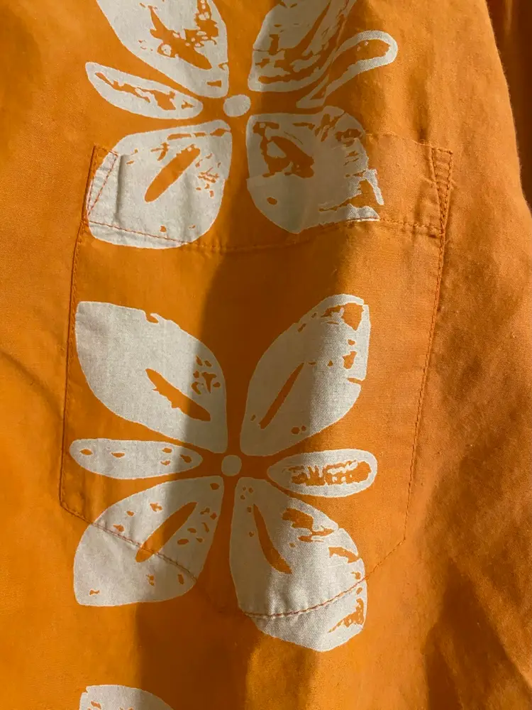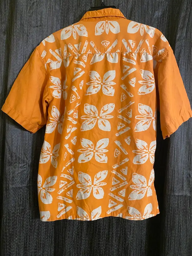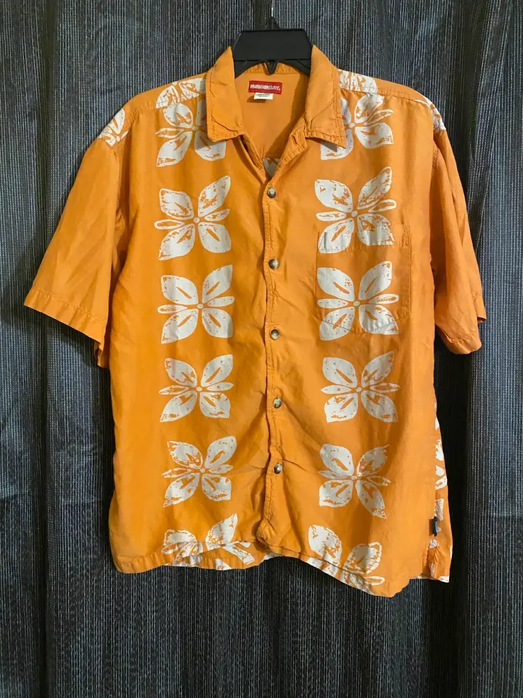 You are purchasing one Men's Size Large Orange Floral Pattern Short Sleeve Button-Up Hawaiian Shirt by UnionBay. This Shirt is in great condition with no rips, stains, holes or missing buttons.