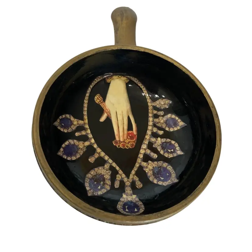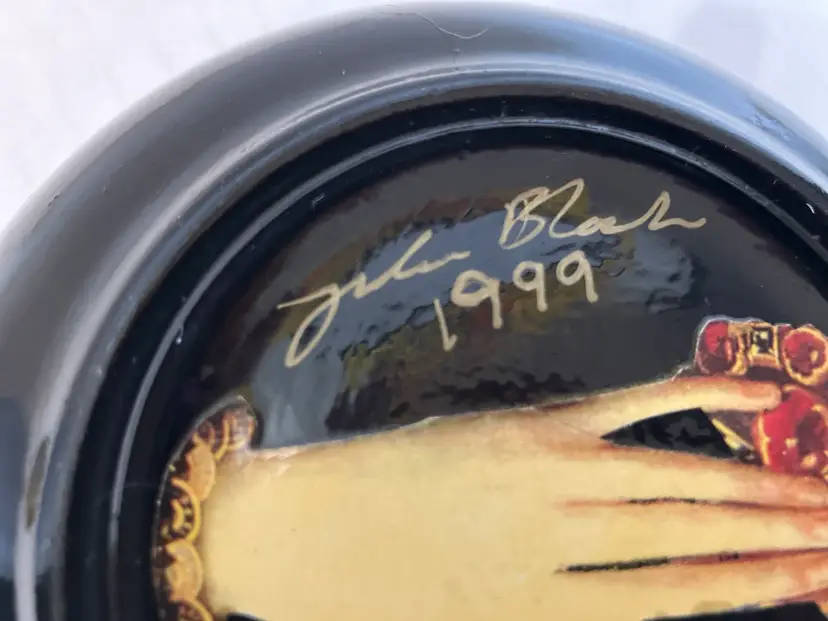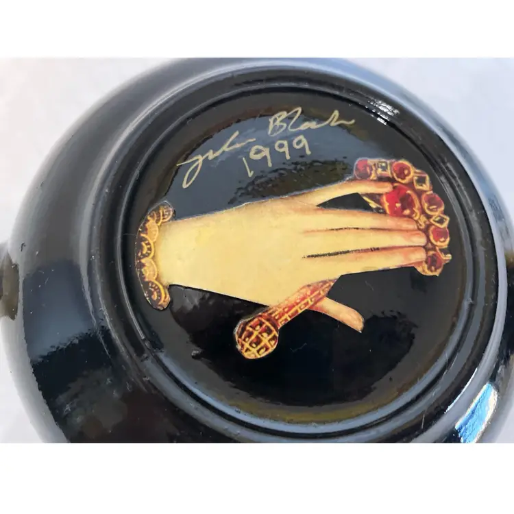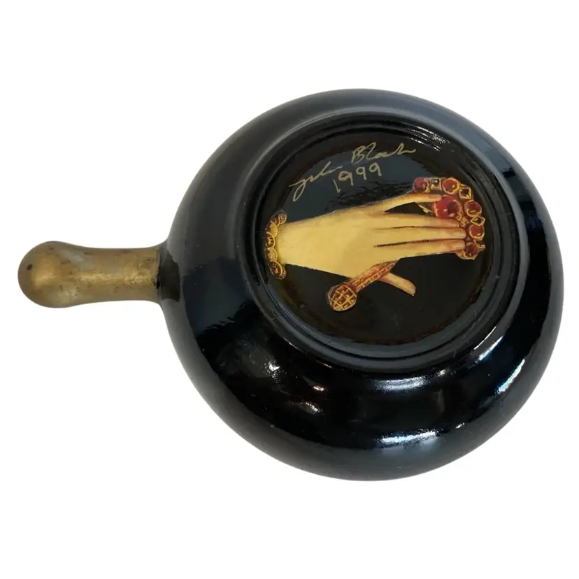 Fun up-cycled ceramic bowl signed by the artist in 1999. Cute for a trinket bowl. Decorative only not for food use. Measures 7” rim to handle and 1.75” tall. Please see all for condition and details thank you.