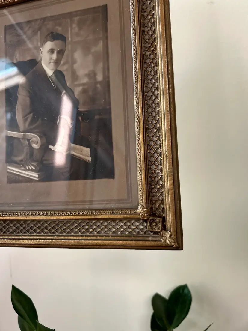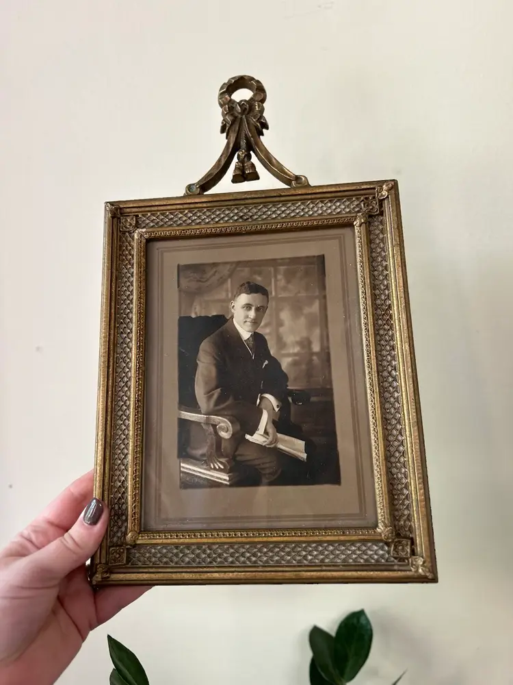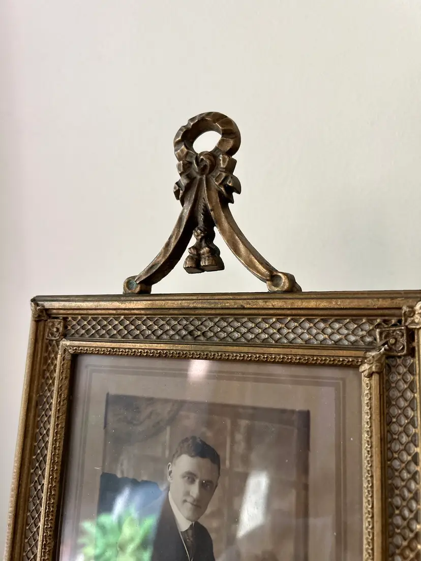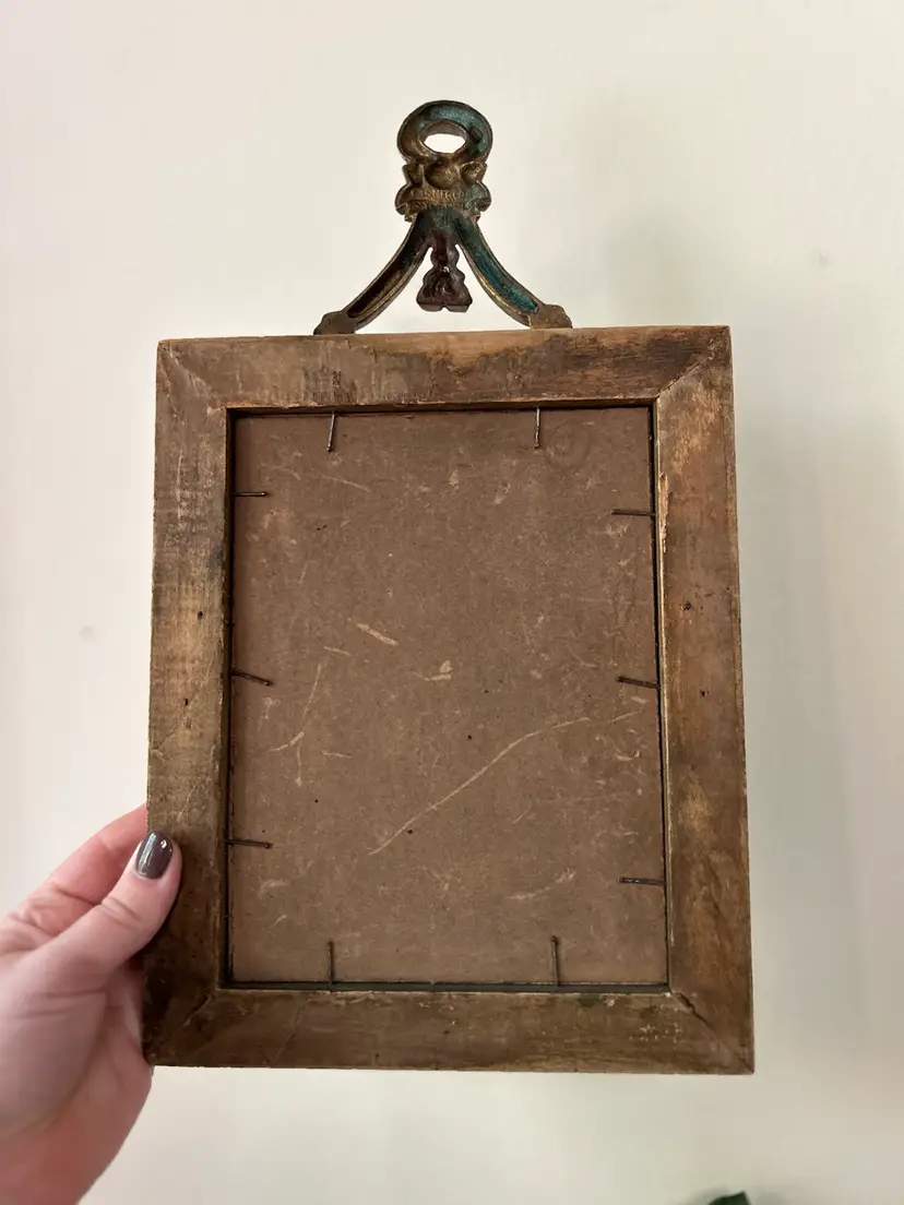Unique gold hanging wall picture frame. Measures 8 1/4 x 14 inches.