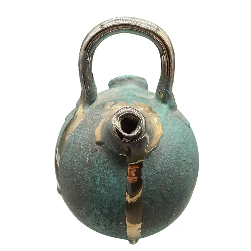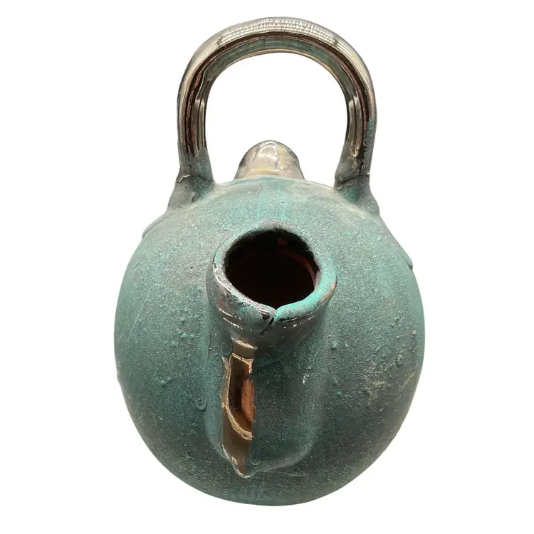 This handcrafted gargoulette teapot showcases a fusion of ceramic and metal in a distinctive Mid East Egyptian style. Its unique design and textured surface reflect traditional craftsmanship, making it a remarkable addition to any collection. The teapot offers both aesthetic appeal and functionality, ideal for those appreciating cultural artistry.