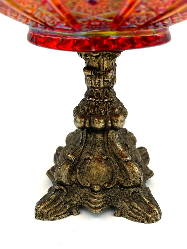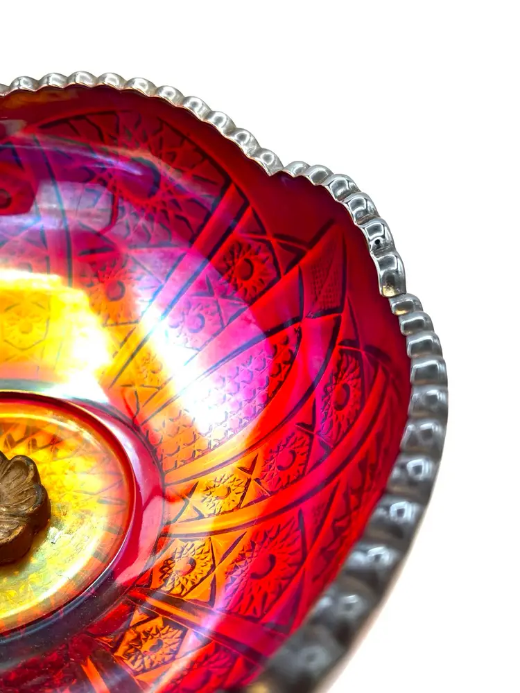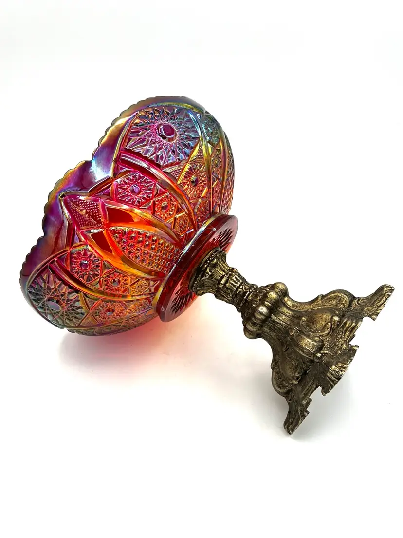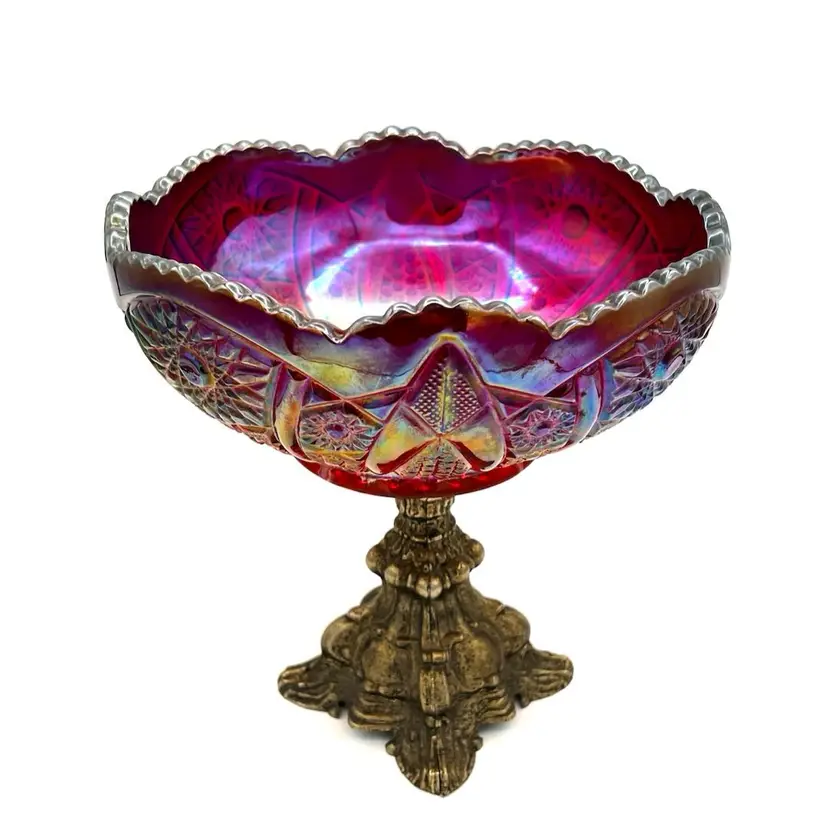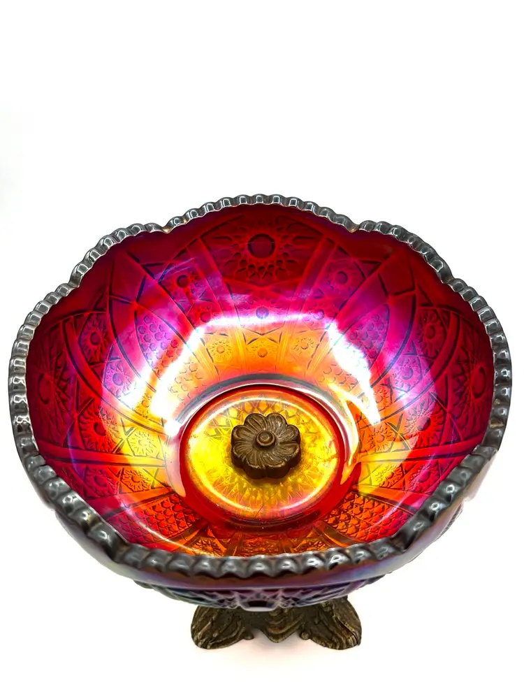 Stunning Indiana glass bowl that has been attached to a brass base, making it a unique piece.