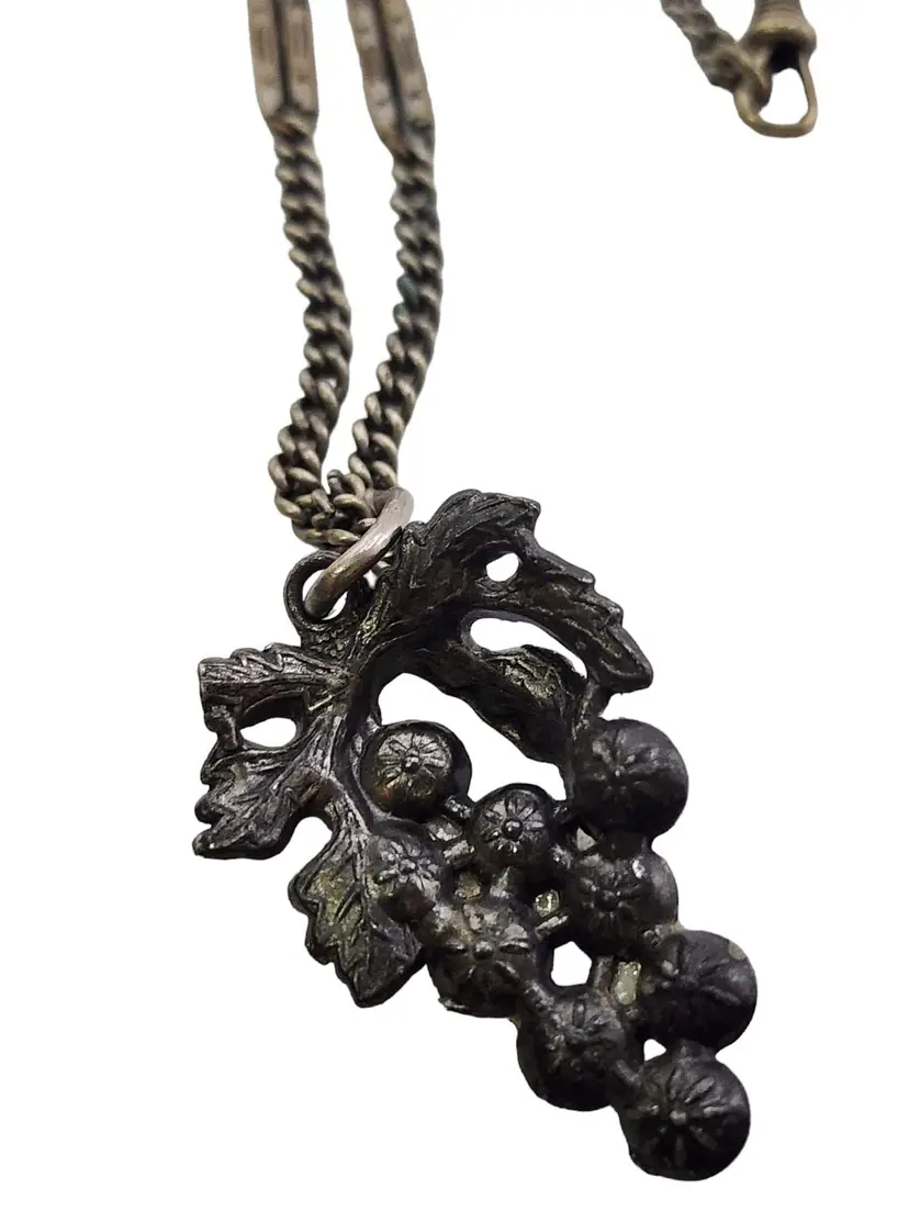 Unique Victorian Watch Fob Chain with Pot Metal Grape Pendant (A4896)