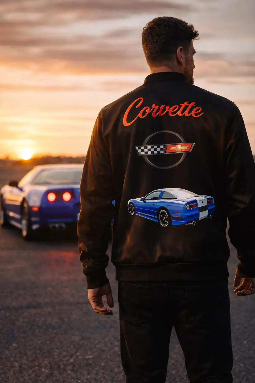 Built with a sleek bomber silhouette, this jacket blends motorsport heritage with modern streetwear, making it perfect for car meets, cruise nights, track days, or everyday wear. The detailed artwork celebrates Corvette speed, performance, and legacy, turning this piece into more than just outerwear — it’s a wearable tribute to American muscle.