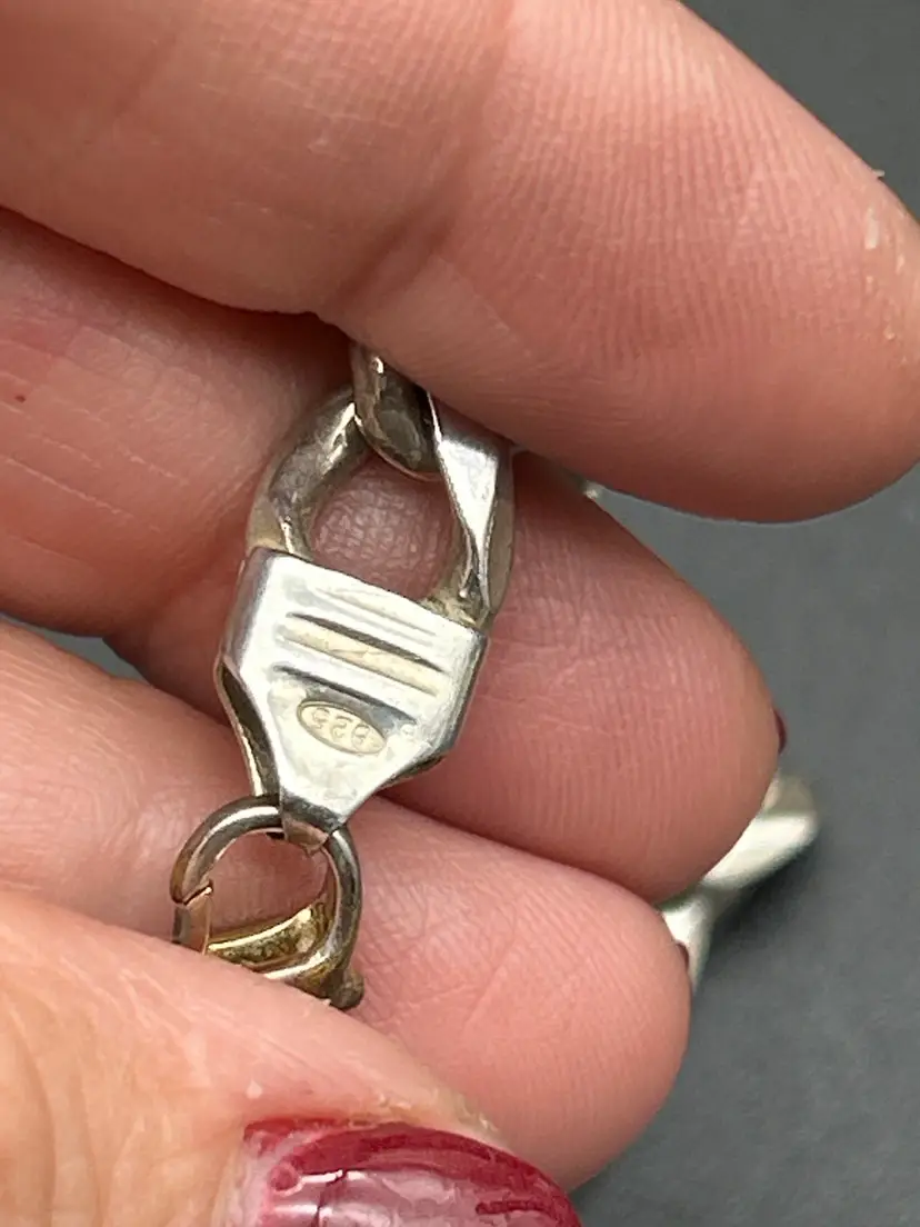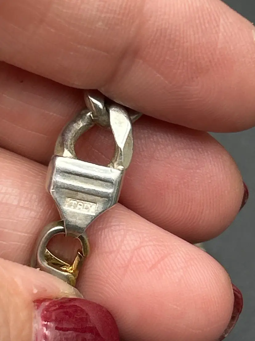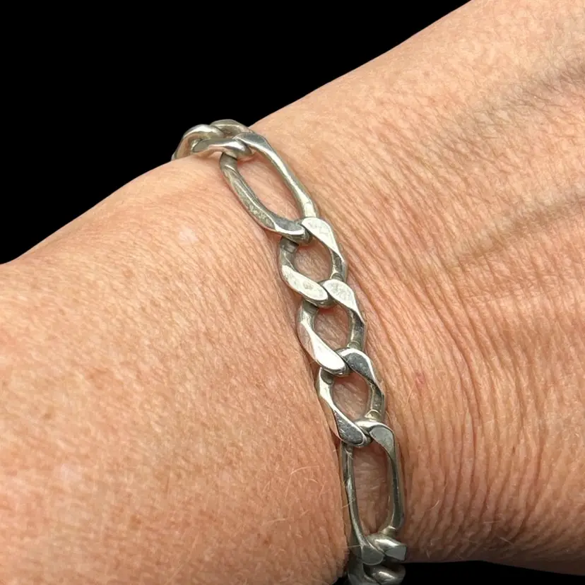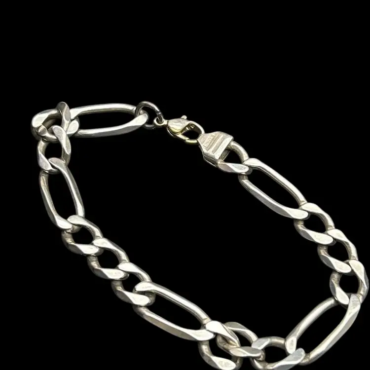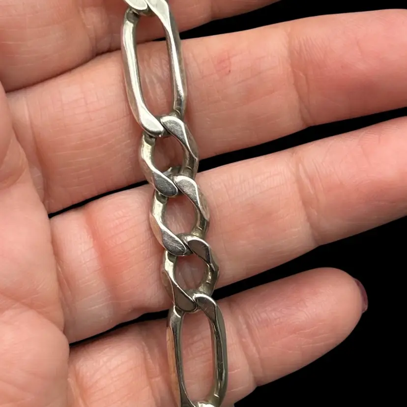 📝 Notable Details • Length: 8.5 inches • Weight: 23 grams • Metal: Sterling silver (.925) • Style: Figaro chain • Markings: 925 and Italy • Clasp: Lobster clasp • Condition: Pre-owned, light patina (can be polished if desired) • Great for both men and women