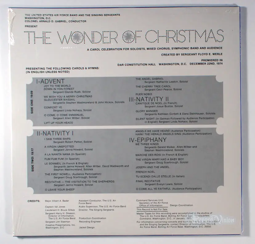 The Wonder of Christmas, released in 1974 by the United States Air Force Band and Singing Sergeants under conductor Major Albert A. Bader, is a festive album featuring a collection of traditional Christmas carols arranged by USAF Chief Arranger Floyd E. Werle, celebrated as one of his finest works. This 30-track album, spanning Advent, Nativity, and Epiphany themes, showcases holiday classics like Joy to the World, Silent Night, and O Come All Ye Faithful, performed with a symphonic band, mixed chorus, and soloists for an immersive seasonal experience. Its historical significance lies in its enduring popularity, evidenced by its re-release on CD in 2012 and its recognition as a masterful arrangement that engages audiences with its rich, celebratory sound. The album does not feature chart-topping hit singles, as it focuses on traditional carols rather than commercial pop releases, but tracks like Cantique De Noel and The First Nowell stand out for their emotive arrangements. Available on platforms like Spotify and Apple Music, it remains a cherished holiday staple for its patriotic and musical legacy.