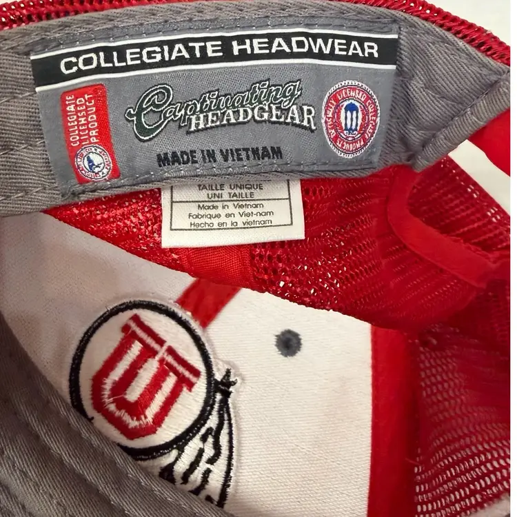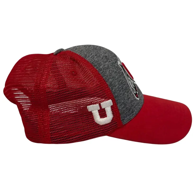 There is some discoloration on the red brim, otherwise in excellent condition. The University of Utah Utes NCAA Heather Gray & Red Trucker Style Snapback is a stylish and officially licensed cap designed for football fans. Made by Captivating Headwear, this hat features the red team colors and is suitable for unisex adults. Perfect for wearing during the regular season, this snapback is a must-have accessory for any Utah Utes supporter looking to show their team pride.