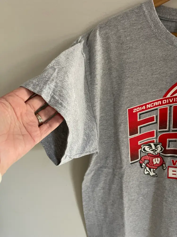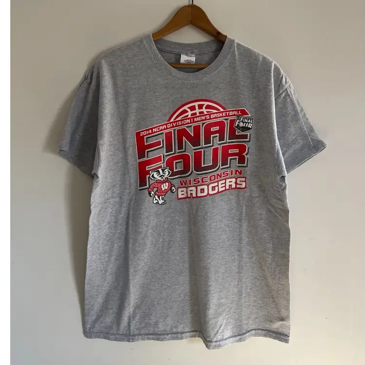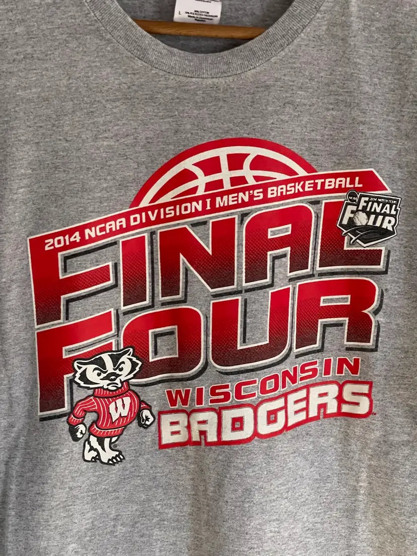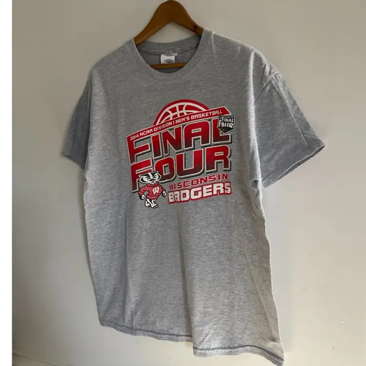 NCAA Final Four Tshirt Branded University of Wisconsin Badgers Men's Basketball 2014 Unisex Adult Large 90Cotton/ 10 Polyester Grey Tshirt Licensed Tournament Merchandise