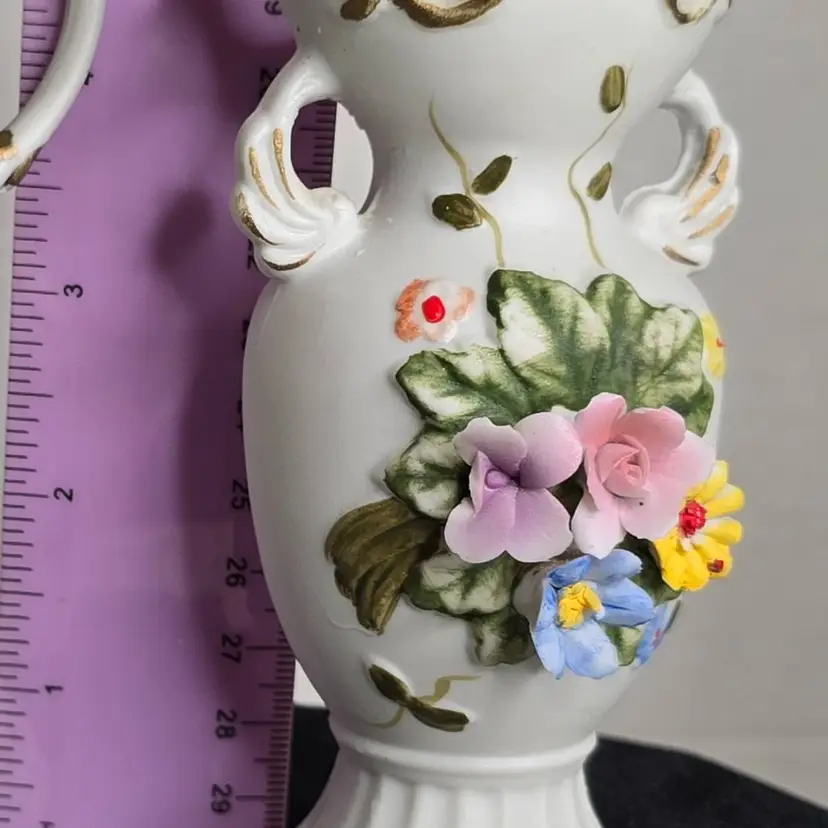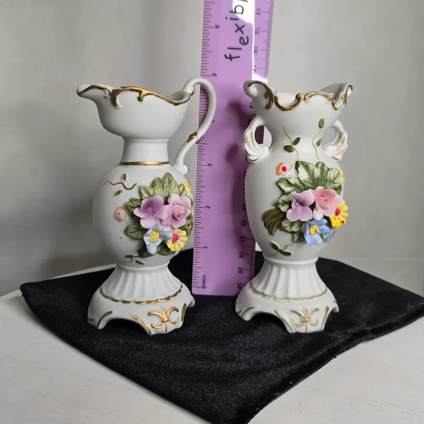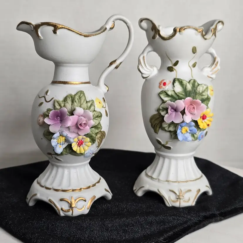 You will get both Pitcher and Basin has one chip on a purple flower Hand Painted