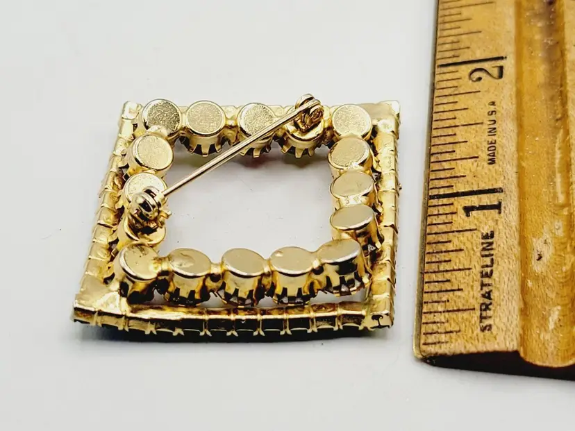Size: measures 2.75'' Condition: Very good vintage Era: Circa 1950's Signed: Unmarked Details: Stunning Gold plated brooch, accented with beautiful metallic A.B. (Aurora borealis). This piece has amazing stone, sparkles like crazy. Definitely unsigned Austria. Came from an Austrian Rhinestone brooch collector. The stones are prong set. This is a quality, well made brooch!