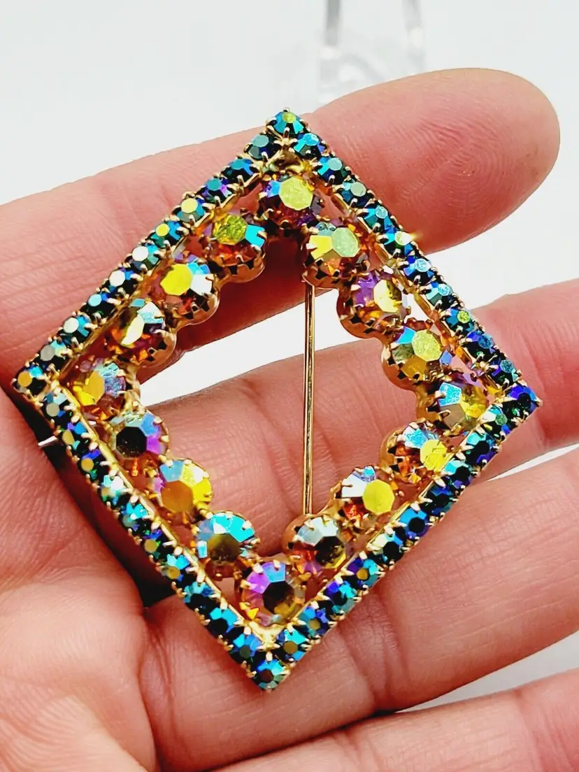 Unsigned Austria Super Sparkly Ab Rhinestone Brooch Pin