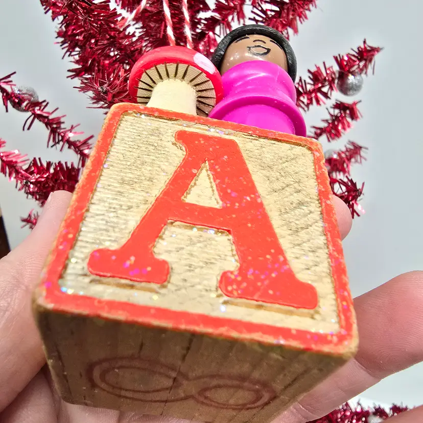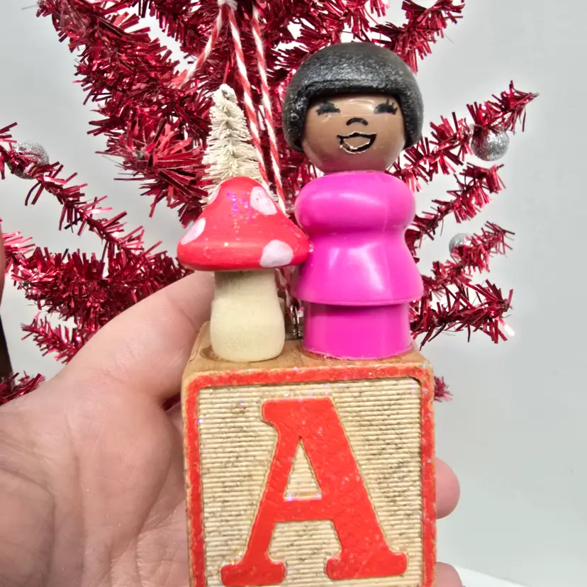 Upcycled Fisher Price Little People Christmas Ornament or Home Decor letter A