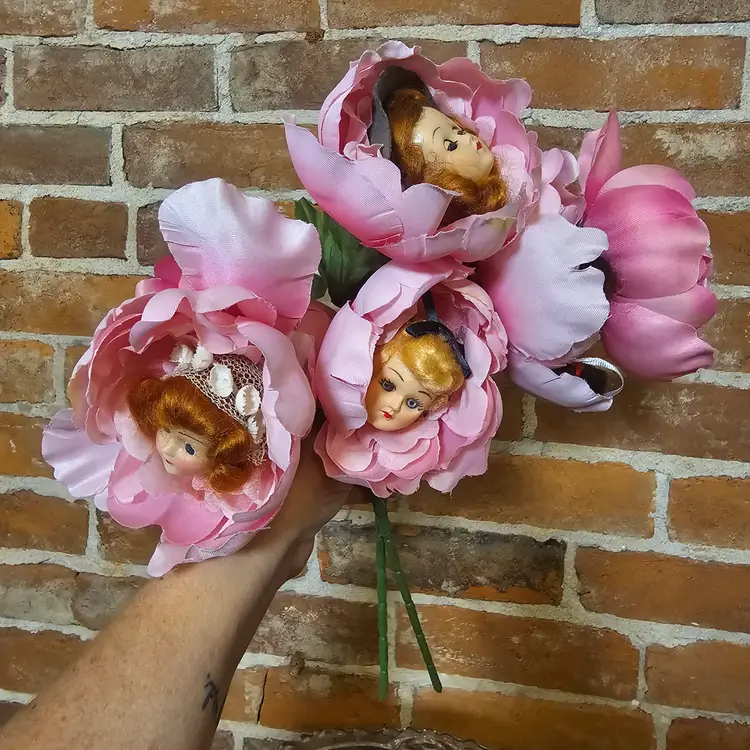 You will get 2 bundles of flowers with 4 doll heads on each bundle.