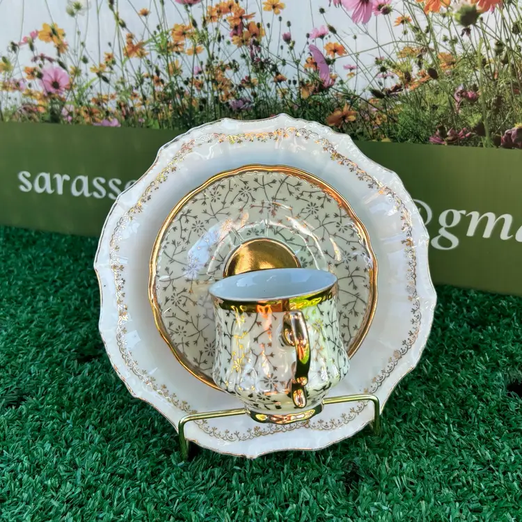 Displaying this vibrant Summer bird-feeder on a plate holder would be wonderful (as pictured). Our customers have told us in addition to displaying them, they have decorated by placing them in large potted plants. Planting succulents or air plants in the tea cups are additional creative uses.