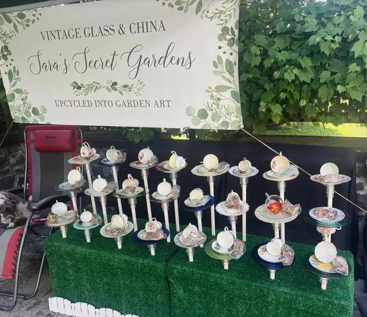 We are a husband and wife team that upcycle vintage glass and china into art. We also resell amazing vintage items we find while sourcing.