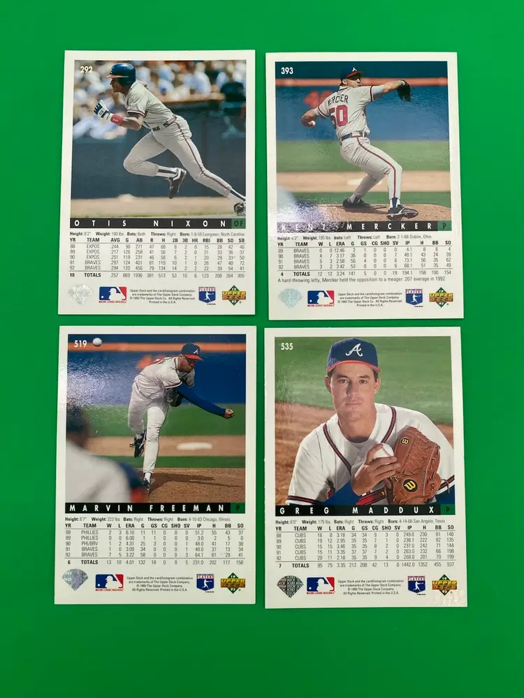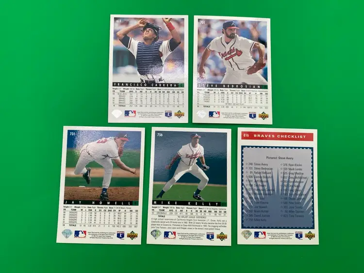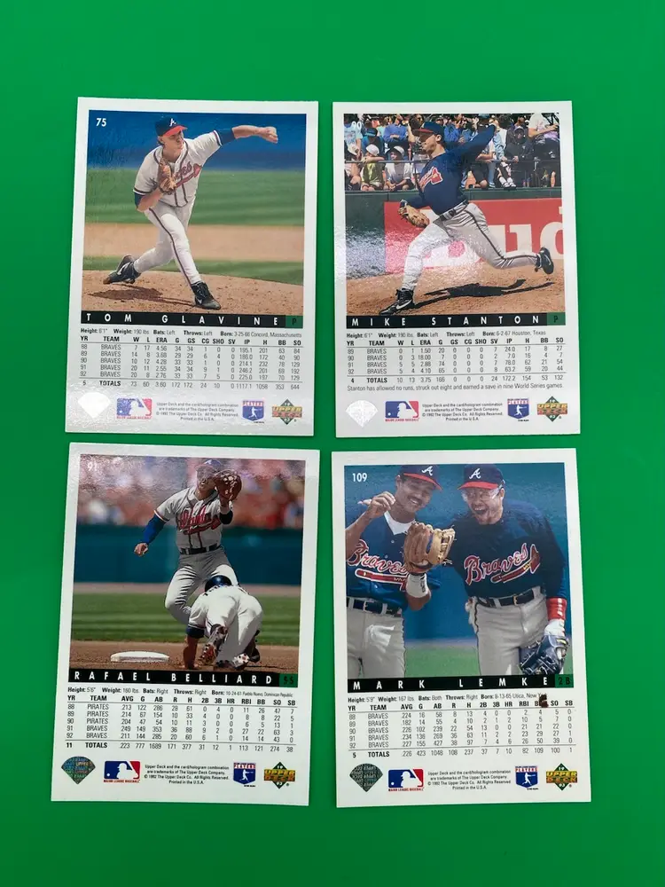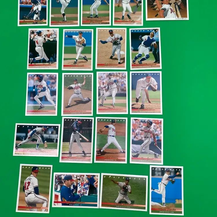 You are purchasing a lot of 21 different MLB Atlanta Braves Trading Cards from the 1993 Upper Deck line. These Cards are in overall good condition. See images for all of the Cards included in this Listing and their Conditions.