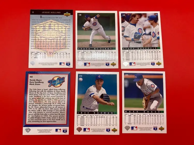 You are purchasing a lot of 12 Different MLB Chicago Cubs Trading Cards from the 1993 Upper Deck line. These Cards are in overall good condition. See images for all of the Cards included in this Listing and their Condition.