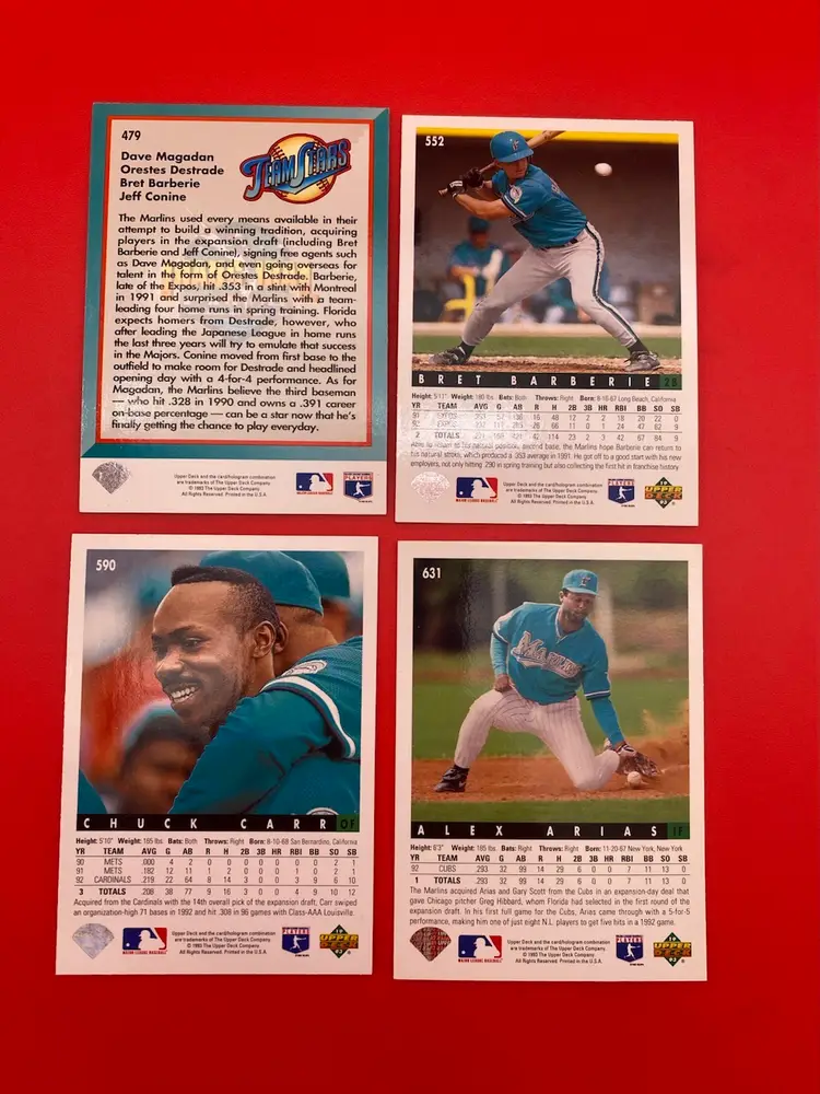 You are purchasing a lot of 13 Different MLB Florida Marlins Trading Cards from the 1993 Upper Deck line. These Cards are in overall good condition. See images for all of the Cards included in this Listing and their Condition.