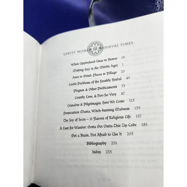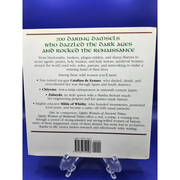 Uppity Women of Medieval Times by Vicki Leon Published 1997 246 pages Hardback in excellent condition - minor discoloring on dusk jacket - spine intact Stories of 200 damsels not in distress holding their own during medieval times using their wits, charms and such to hold their own places.