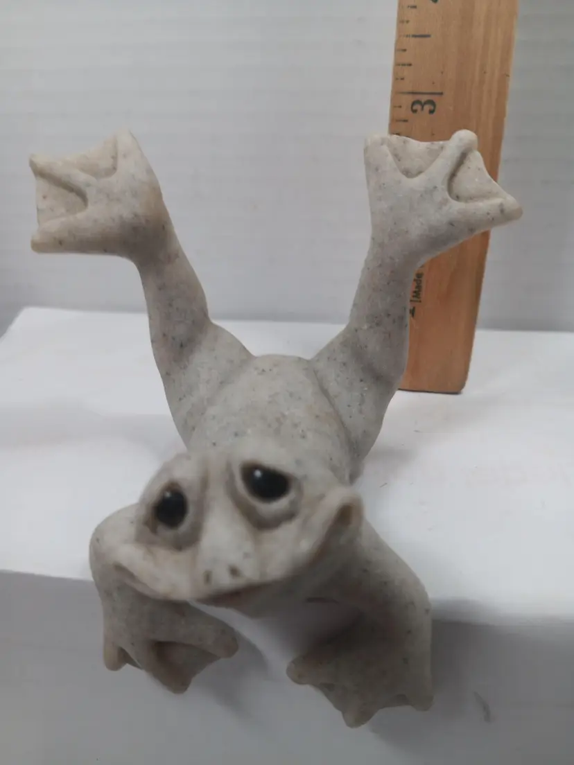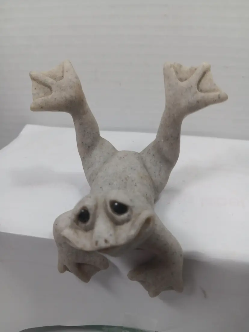 Charming ceramic frog with a playful upside-down pose, perfect for adding a touch of whimsy to your decor.