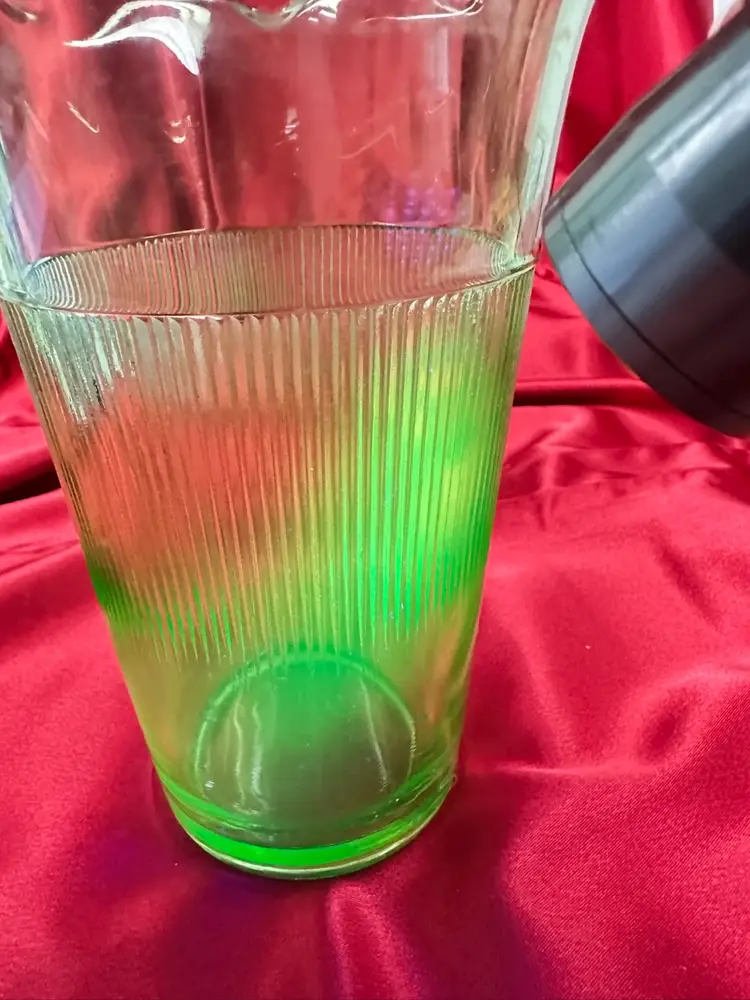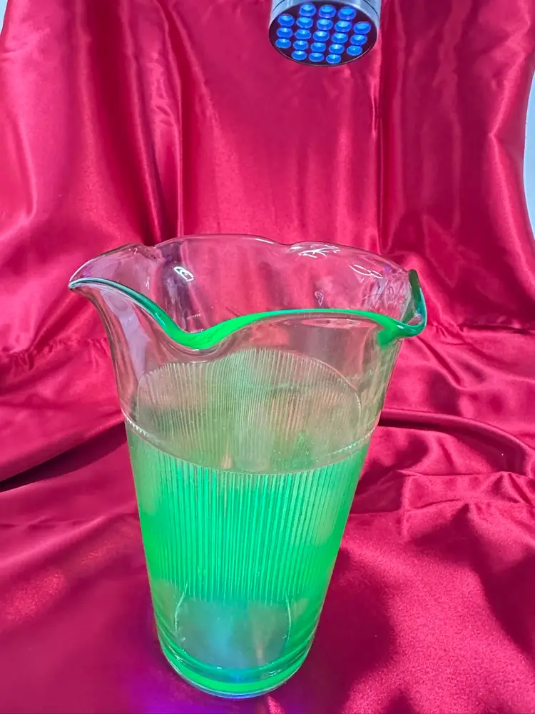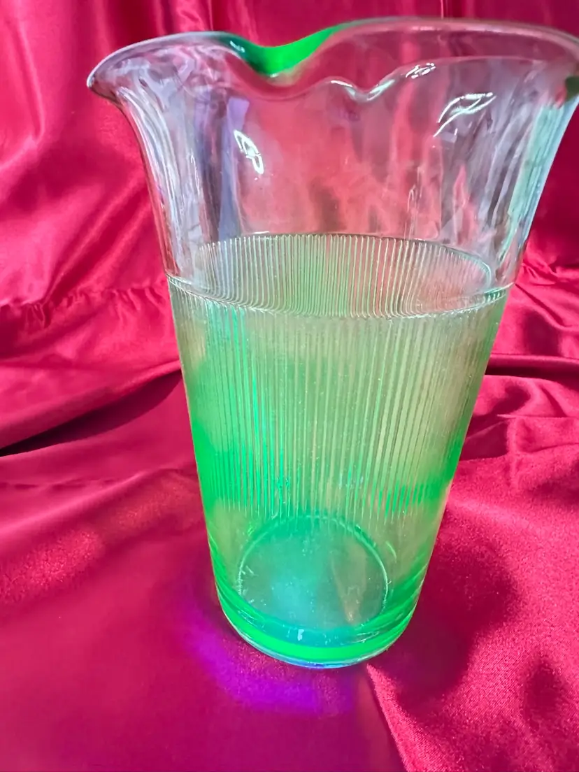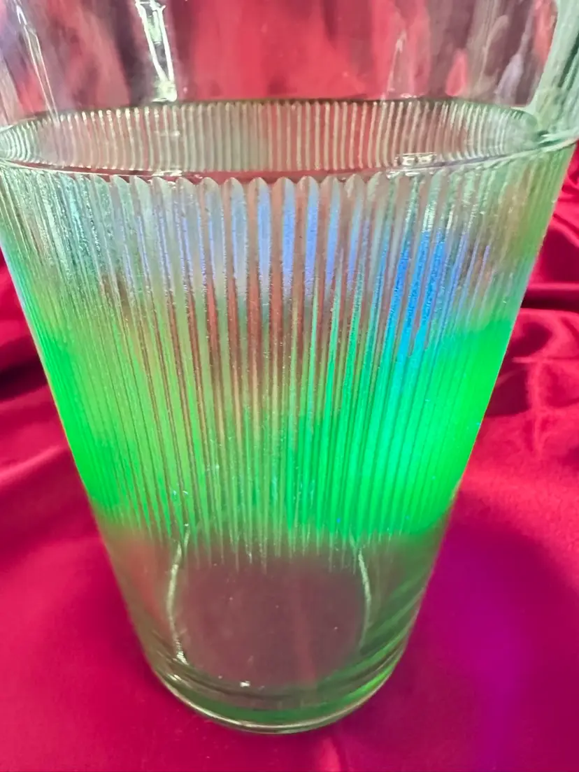 This 6.5 tall and 4.5 across the top. Has ribbed around the sides and ruffled edge. Excellent condition
