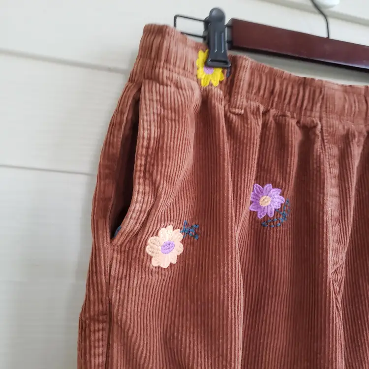 Urban Outfitters Brown Corduroy with embroidered flowers Pants