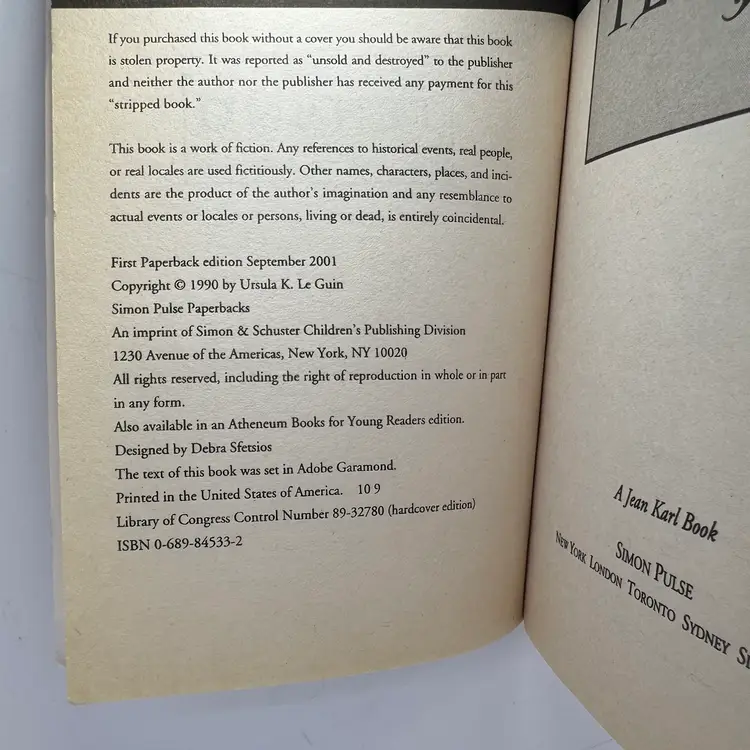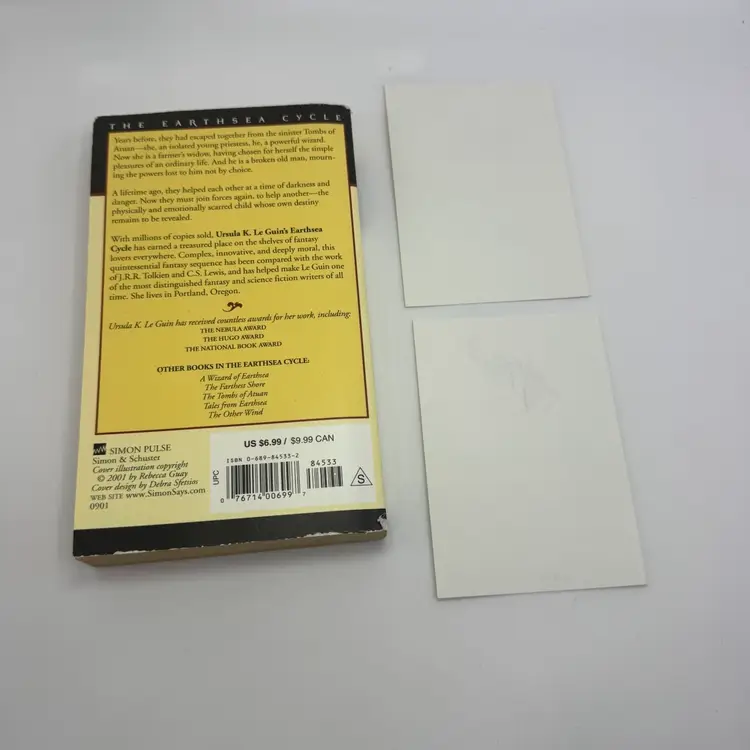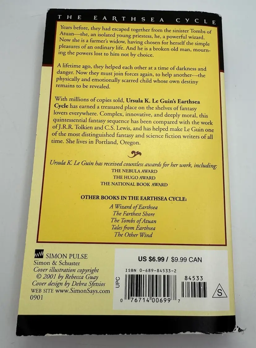 This listing includes a 2001 Simon Pulse paperback edition of Tehanu (Book 4 of the Earthsea Cycle) along with two authentic, author-signed bookplates.