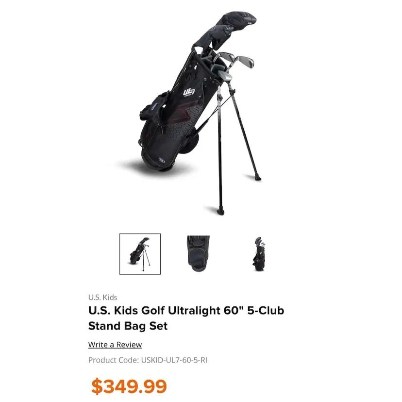 US KIDS Golf Ultralight 60" UL7 5-Club Stand Bag Set Originally priced at $349, great condition with small call out dent on the driver (as you can see on the picture). Asking $245, but feel free to send me an offer.