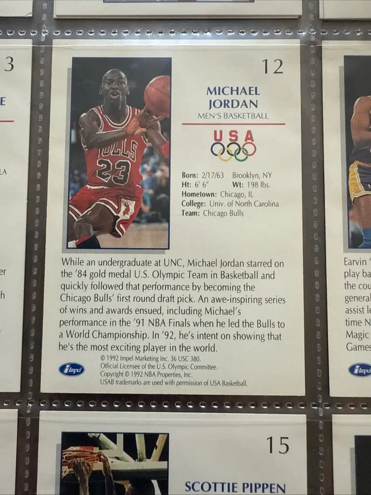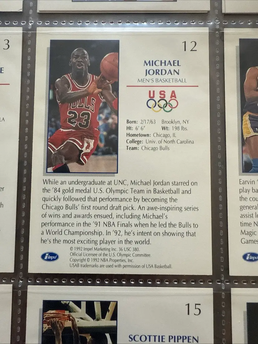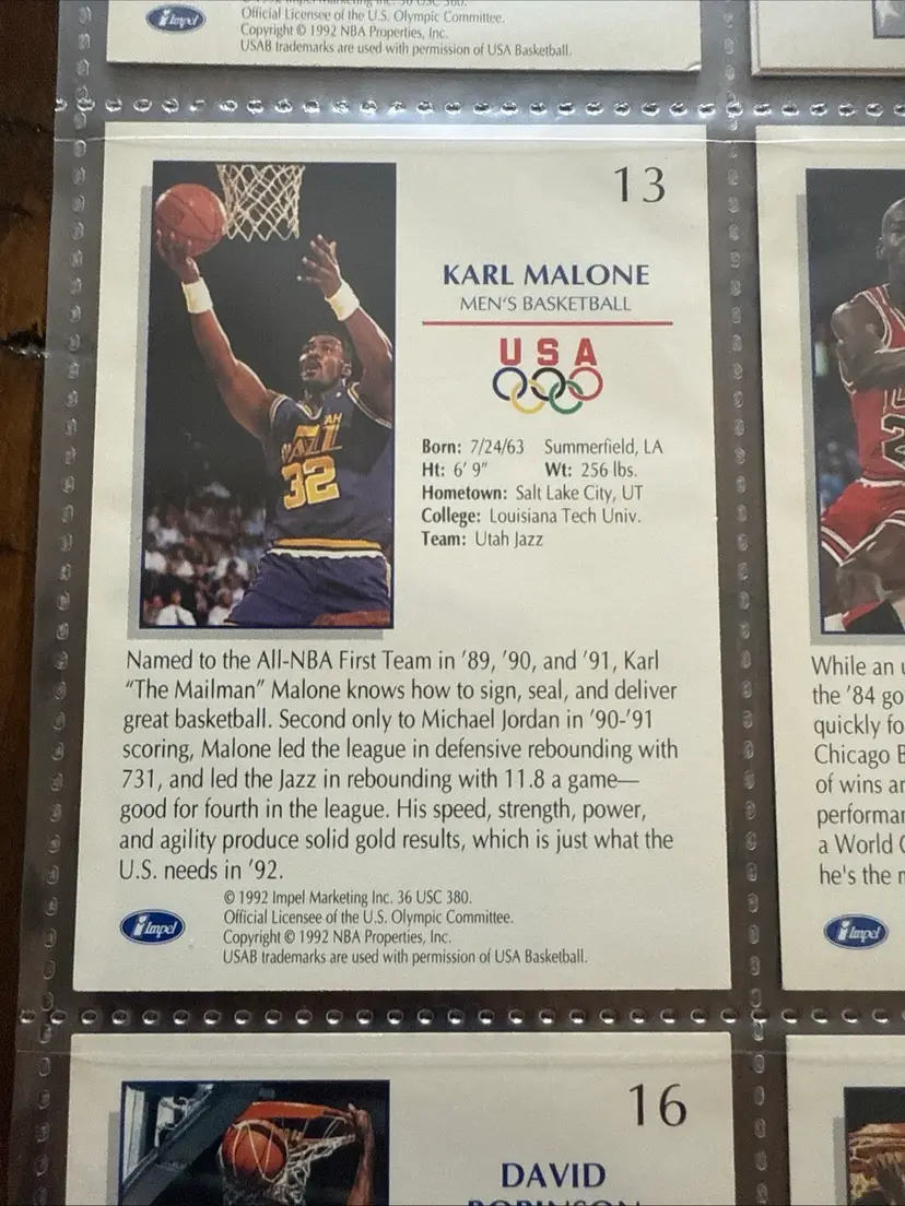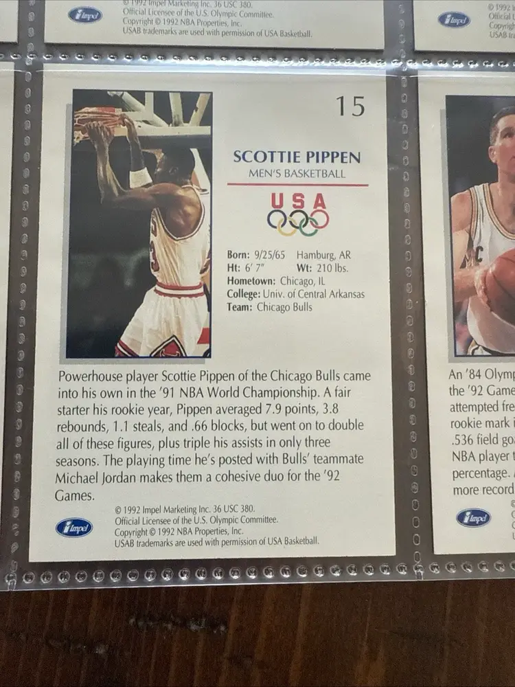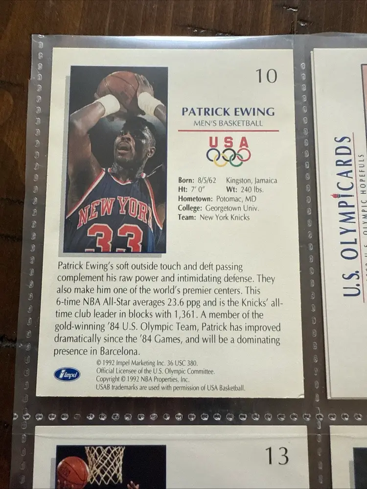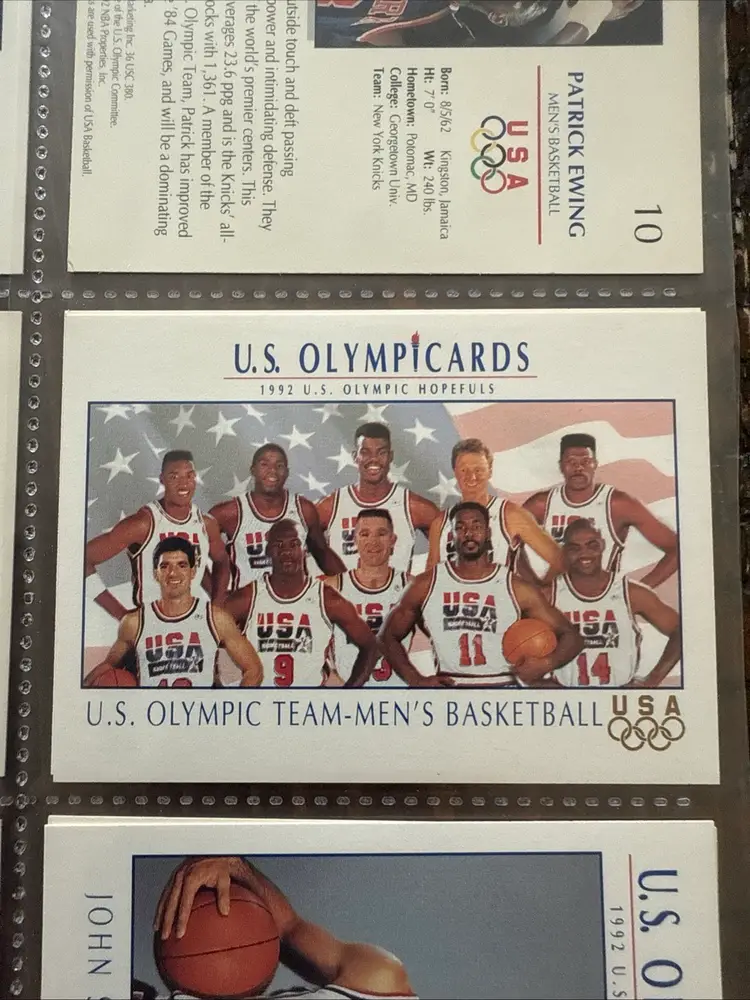 This is a mint condition US Olympic cards of the Dream Team including Jordan, Bird, and so many other greats. The cards will come in the protective sleeves.