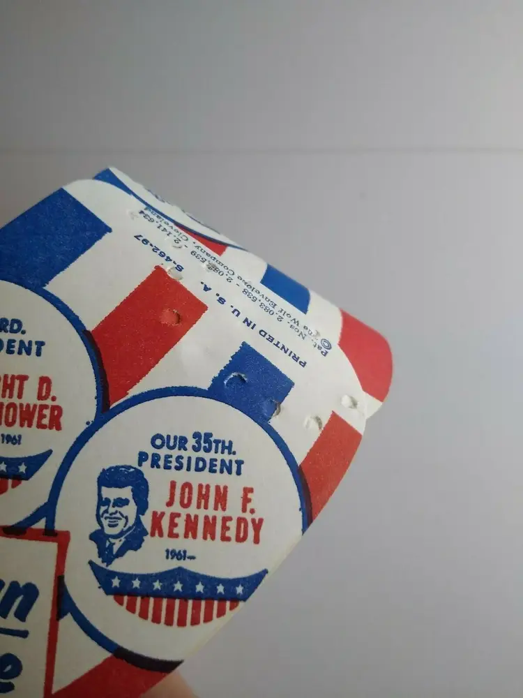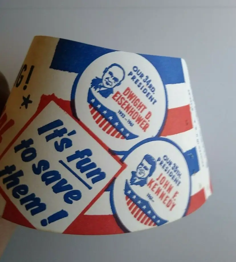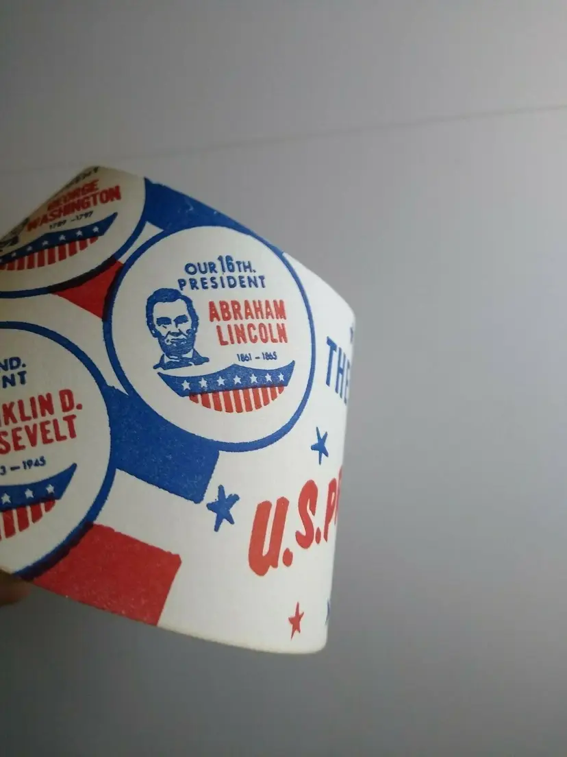Vintage milk bottle collars featuring three of America's most beloved presidents - Washington, Kennedy, and Lincoln. These collars were never used and are in excellent condition, ready for display or use with your own milk bottles. Represent your love for US history and add a unique touch to your collection with these vintage collars.