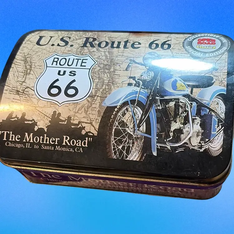 This measures about 5 inches tall and about 6 inches long. It’s a route 66 tin collectible.
