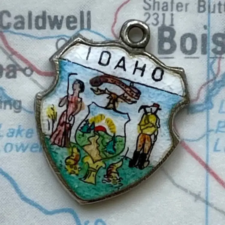 USA - Idaho - State Seal - Vintage Enamel Souvenir Travel Shield Bracelet Charm - Silver