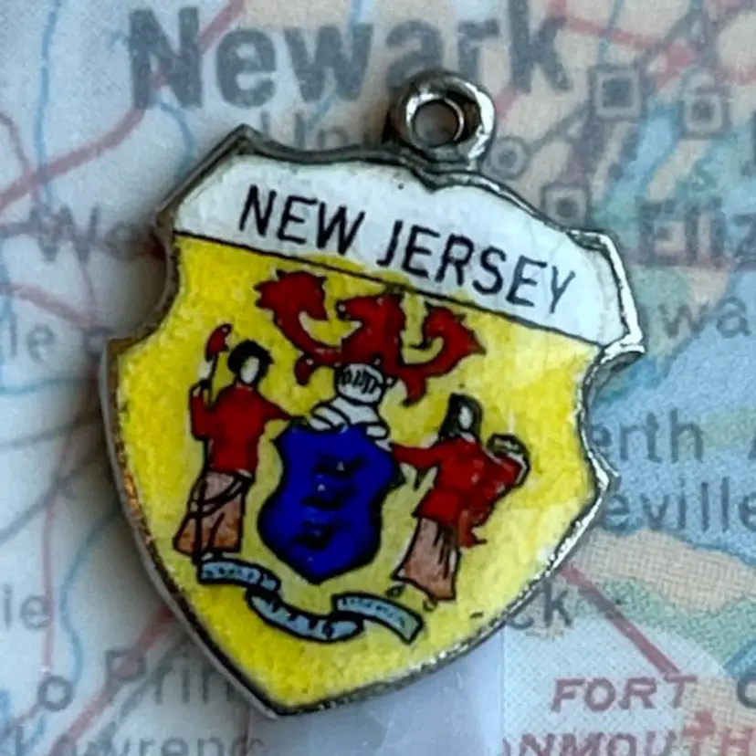 USA - New Jersey - State Seal - Vintage Enamel Souvenir Travel Shield Bracelet Charm - Silver