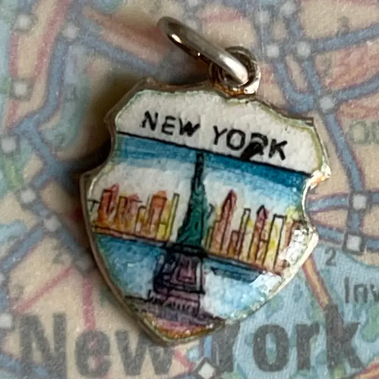 TRAVEL SHIELD CHARMS Vintage Enamel Souvenir Travel Shield Bracelet Charms Vintage Shield Charms were made in the 1950’s-1970’s in Germany. (Manufactured until 1976). Shield Charms are highly collectible today and look great mixed in with silver charms on souvenir travel charm bracelets. eCharmony.com purchased the "New Old Stock” that sat in storage at the charm factory in Germany for 50 years, and also sells from a personal collection amassed from all over the world for the past 25 years. This collection of vintage travel shield charms includes themes of Travel Locations, Countries, Cities, States, Tourist Attractions, Monuments, Animals, Maps, Flags, Coat of Arms, State Seals, Flowers, Famous People, Boats, etc. Can’t find what you are looking for? We have thousands and thousands of charms available that are not listed for sale yet. If you don't see what you are looking for or are looking for a specific charm or location, feel free to contact us with your wishlist. Sometimes there are several different designs of each place, so we will send photos and you can decide which scene you like best. Send your requests to buy@eCharmony.com
