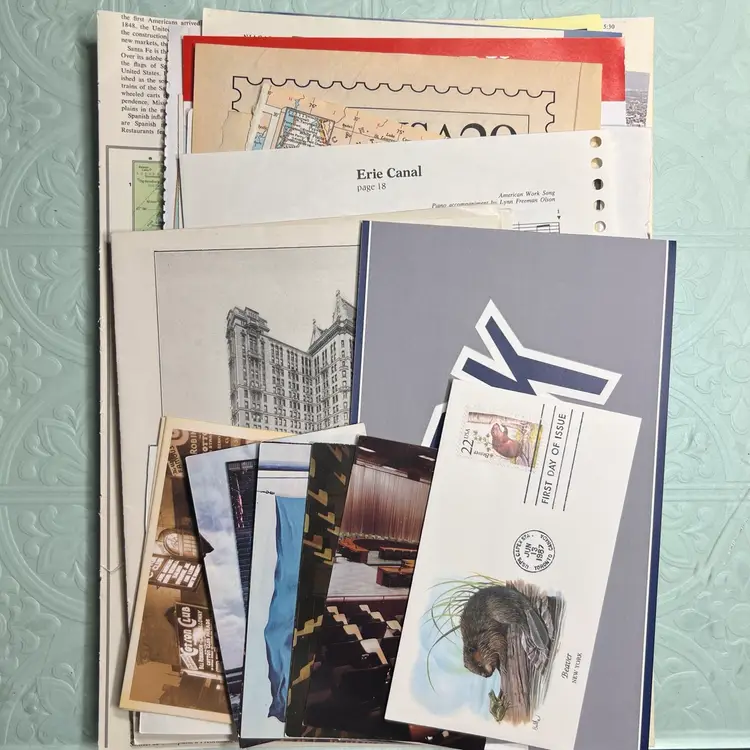 Now 25% off as marked. Mystery bundles of state ephemera. Most of it is 50s-80s vintage, a few items older, and a few pieces from the 90s. Every bundle is different but may have page maps, folded maps, loose book pages, postcards, travel and tourist brochures, music sheets, and books. Prices are adjusted according to bundle sizes.