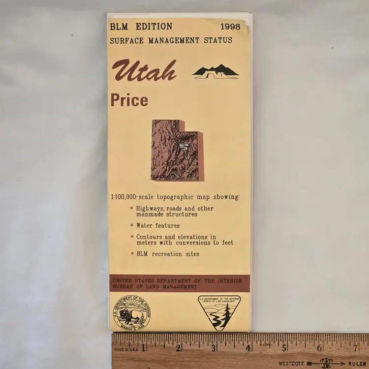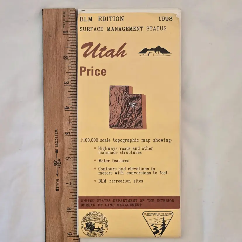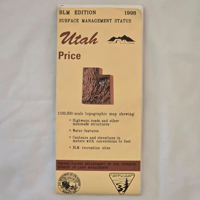 Vintage UTAH Price USGS BLM Map Topographic 1998 Edition Scale 1:100,000 Foldout READ DESCRIPTION. Used condition with some edgewear, creases, tears, etc., but no great signs of substantial use. Please view all the photos and read the entire item description and please ask any questions prior to purchase when possible.