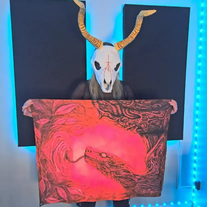 Transform your space with this striking tapestry of my dark surreal oil paintings.