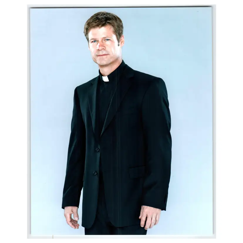 This original press photo features V Joel Gretsch aka Father Jack Landry in a fantastical science fiction setting. The 8x10 inch photograph is printed on high-quality paper and showcases vibrant colors that bring the scene to life. The image is a licensed original produced in 2009 and is perfect for collectors of science fiction and fantasy memorabilia. The photograph is a single piece. The featured persons/artists are Joel Gretsch and Father Jack Landry, and the theme is fantasy. The style is science fiction, and the production technique is photo. This item was produced in the United States and is a must-have for fans of the genre.