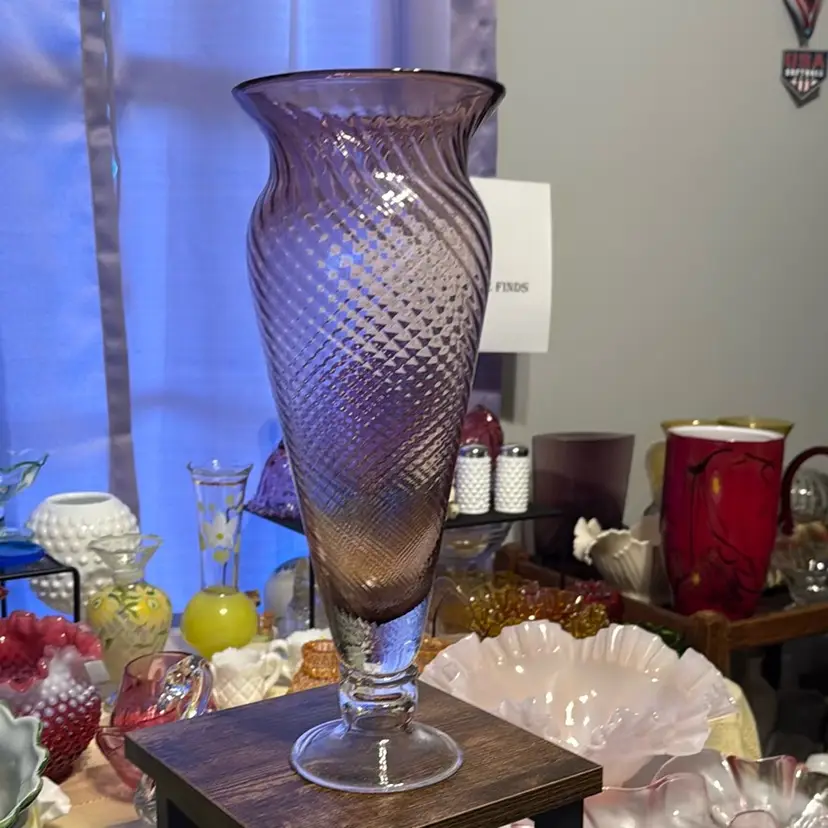 Val Saint Lambert Amethyst Belgian Crystal Vase - 14.5 In