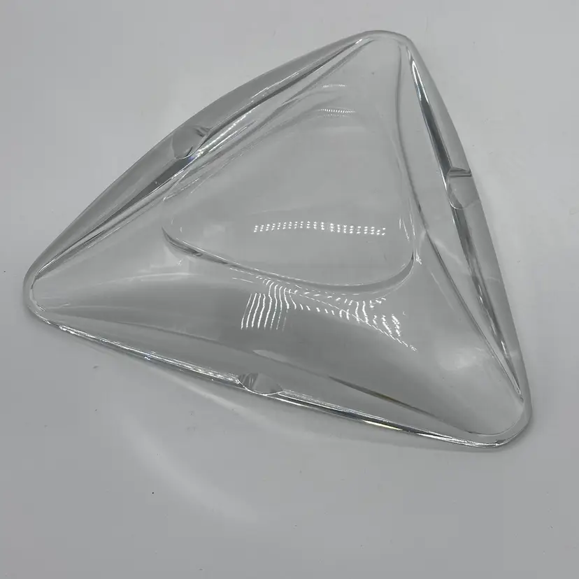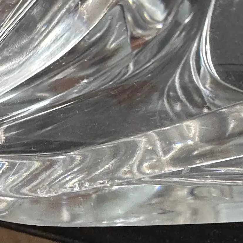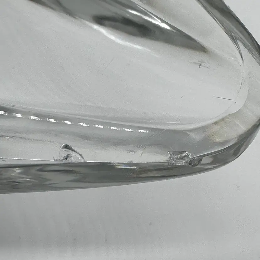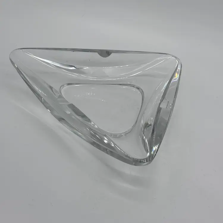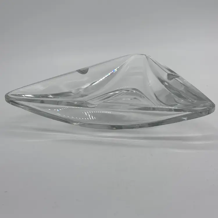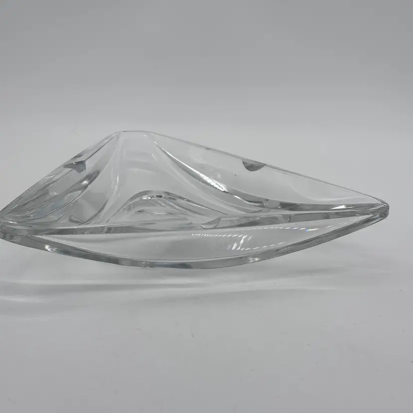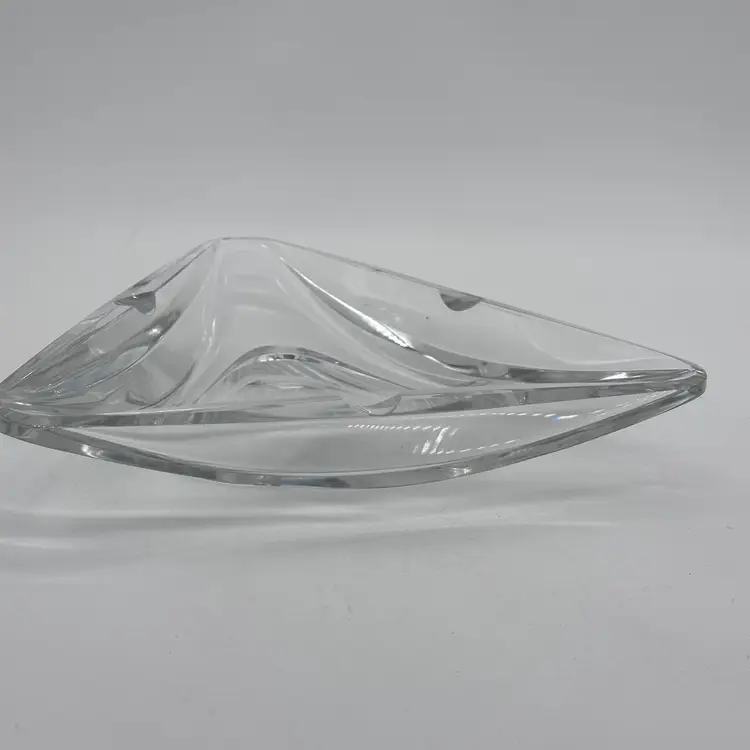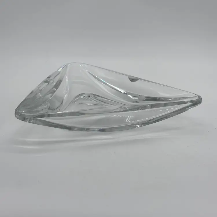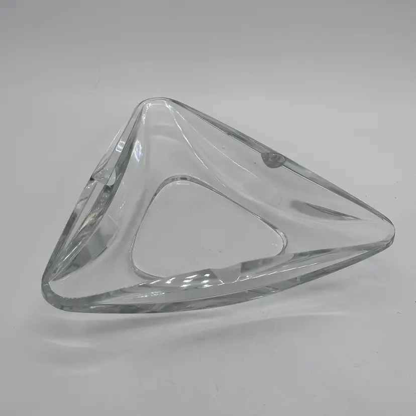 Val St. Lambert Signed Clear Crystal Glass Triangle MCM Art Deco Large Ashtray. In fair condition. There are some chips on the edges and scratches on the bottom of ashtray. Measures 10 inches long and 9 inches wide.