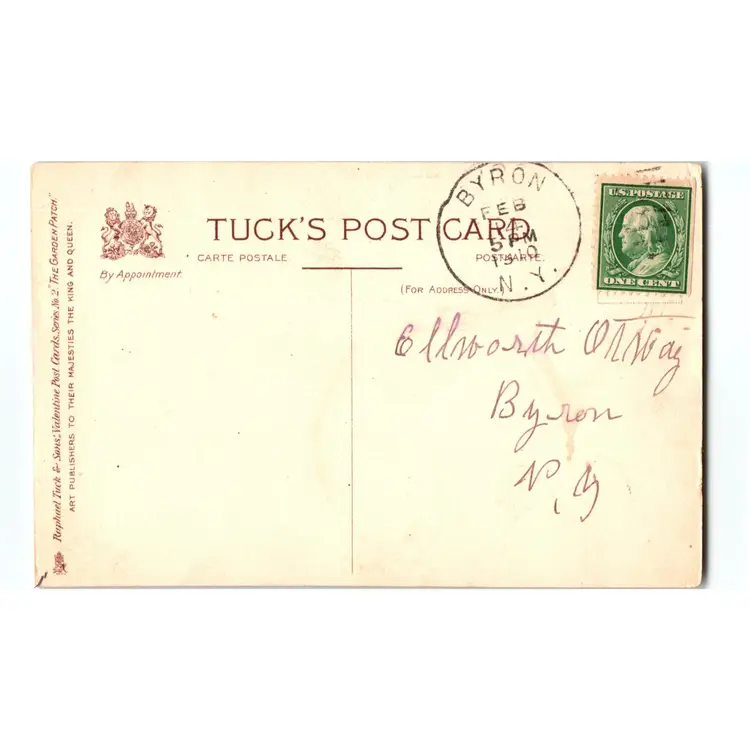 This delightful postcard from 1907 features an anthropomorphic turnip head in a fantasy setting. The artwork is by E. Curtis and is printed as a lithograph by Raphael Tuck & Sons. The card is standard size (5.5 x 3.5 in) and has a divided back for writing a personal message. It is a perfect Valentine's Day greeting and would make a unique addition to any collection of vintage postcards. The card is an original, not a licensed reprint, and is in excellent condition. The card is unposted, providing a blank slate for the new owner to use as they wish.
