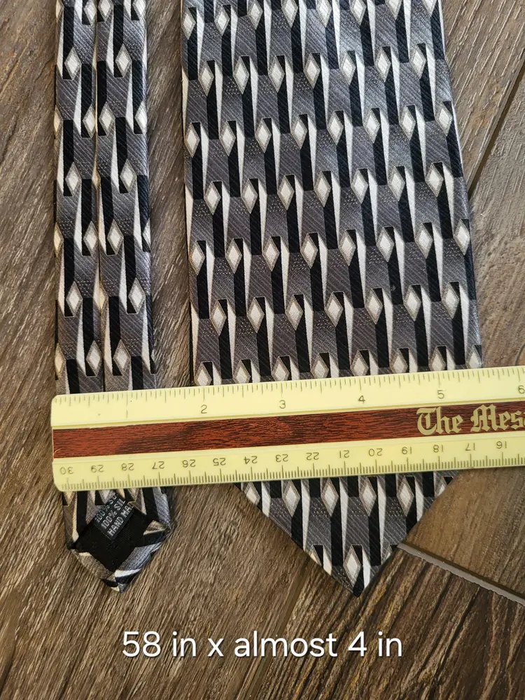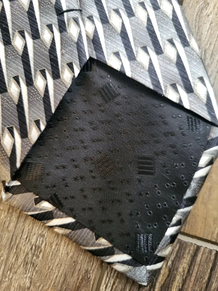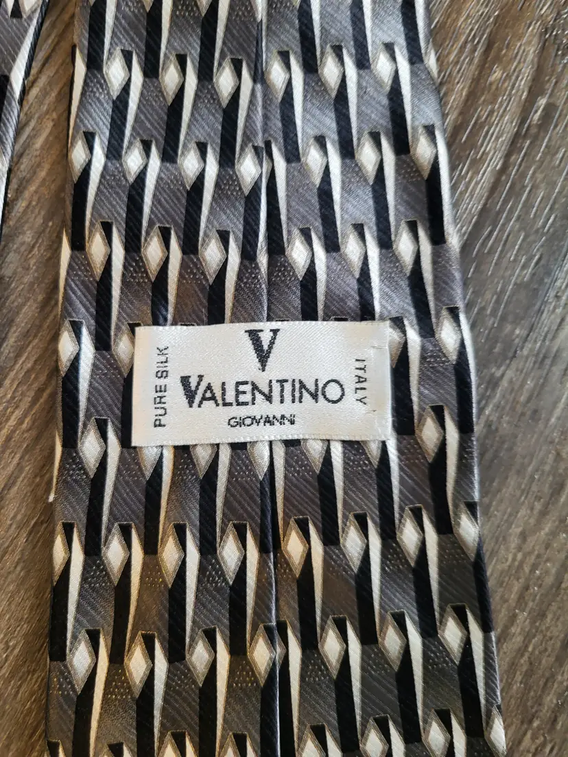 Great shape Valentino, pissibly vintage, tie. Nice design, black, grey, white geometric print. Shipping cost is based on your location, size and weight of box item is shipped in. If you feel shipping cost is to high let me know what your zip code is and I can see if there is a cheaper option. Shipping is done by USPS, I choose cheapest option when listing but shipping will be USPS. I do combine shipping if you buy more than one item from my store. Any questions please do not hesitate to ask.