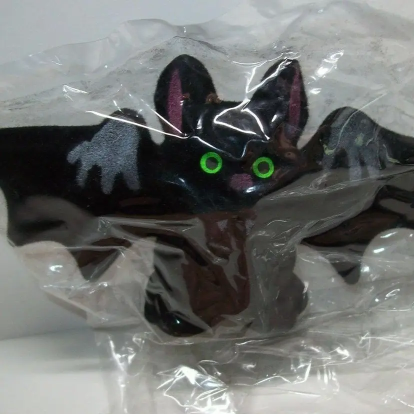 This vintage Vampire Bat Toy from the 1960s is a rare find for collectors of Halloween and horror-themed toys. With its green eyes and intricate detailing, it's evident that the toy was crafted with care. The toy was made in Hong Kong and is in its original unused condition. Its vintage appeal is enhanced by its featured refinements such as being manufactured in the 1960s and being a bat-style toy. This toy is perfect for fans of vampire-themed toys and collectors of rare vintage toys.