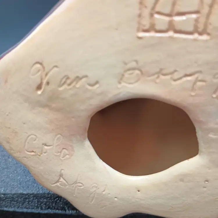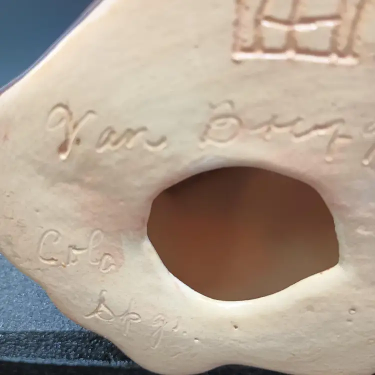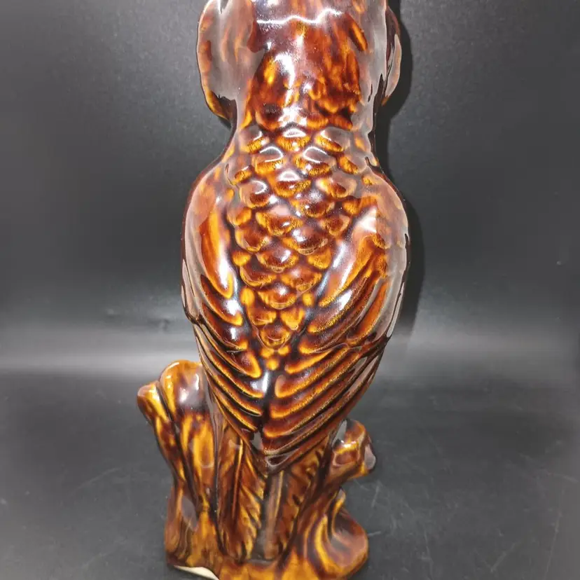 There is no damage to this lovely owl. It measures approx 9 1/2 inches tall by 4" wide