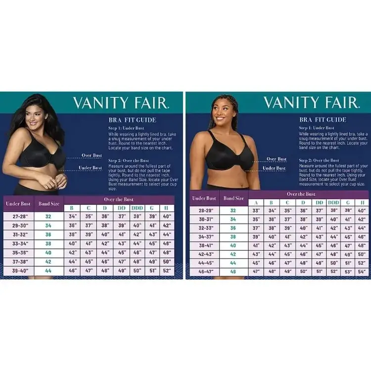 This women's Vanity Fair bra is a fantastic foundation. The two-ply, minimizing underwire cups reduce the appearance of your bust size by up to one and a half inches.
