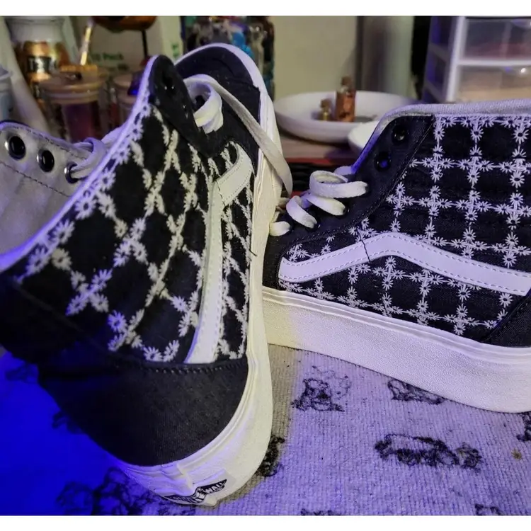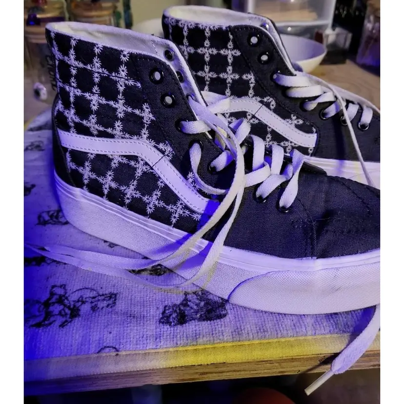 Like new Never worn outside, no wear to outsole Black with white floral pattern Womens 11 Perfect condition