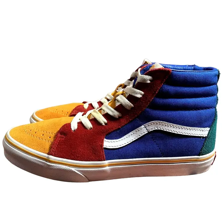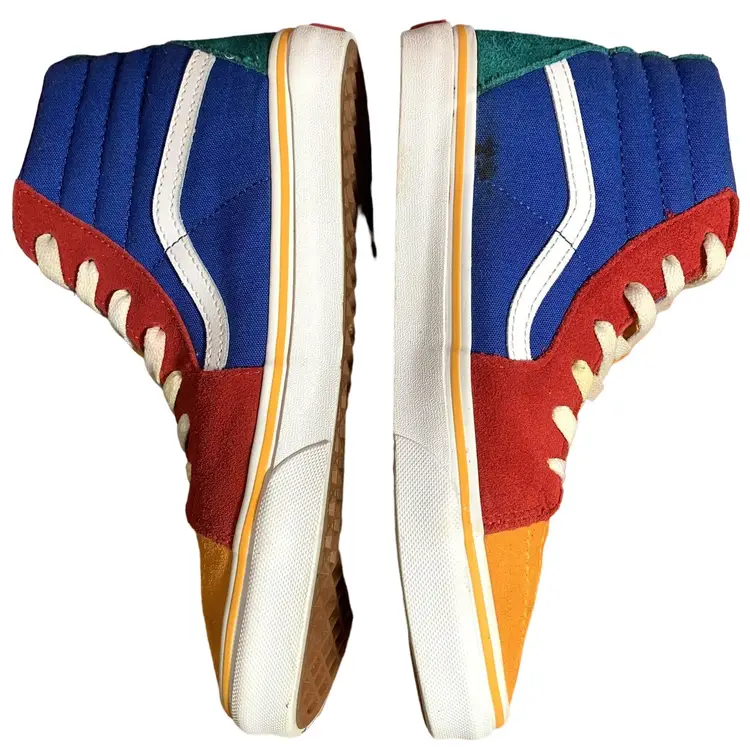 Vans Sk8 Hi Suede Color Block Primary Colors - Red/Blue/Green/Yellow High Top Shoes