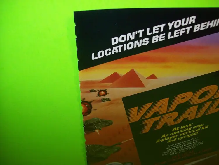 Modified Item: Yes Country/Region of Manufacture: United States Original/Reproduction: Original Magazine Pullout Ad Year: 1990 Game Title: Vapor Trail Modification Description: Edge wear. Brand: Data East